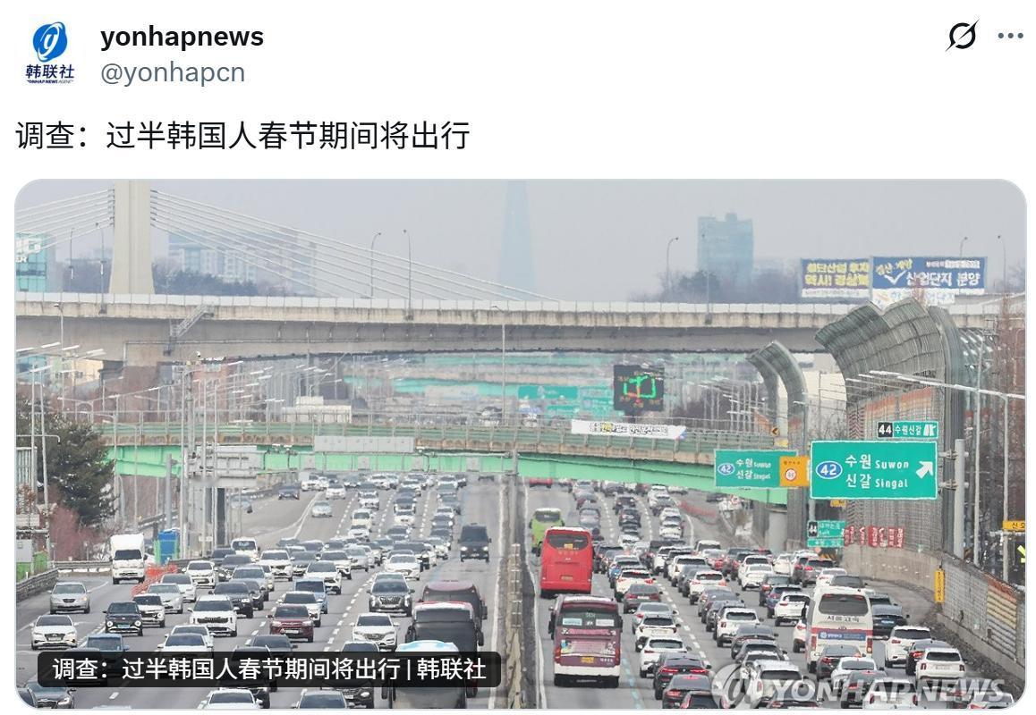 调查:过半韩国人春节期间将出行。 韩国人也过春节吗? 别又被韩国人申遗去了