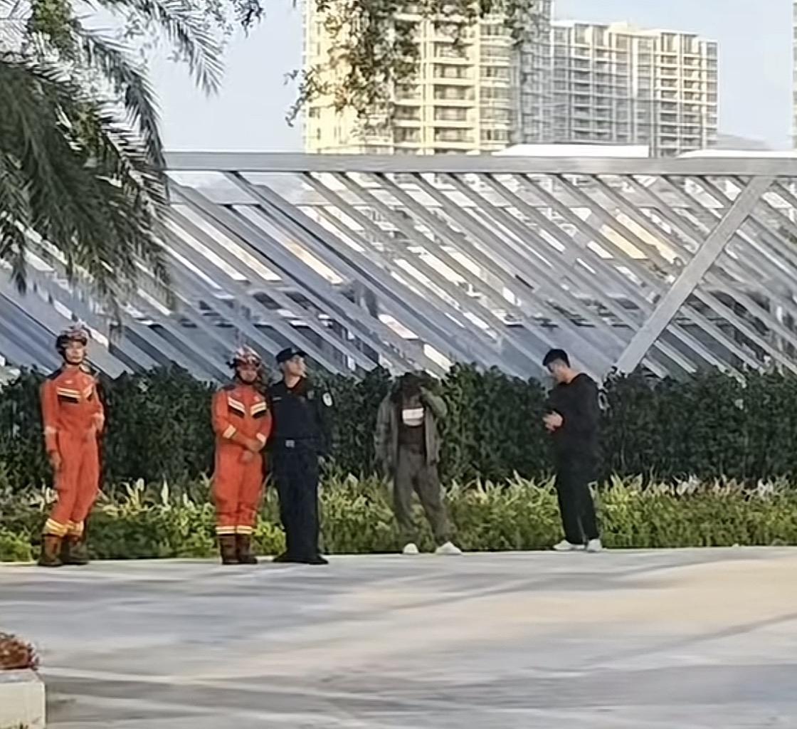 哎我去!这画面我不知道该怎么形容:海南三亚某中心楼前,一个年轻人轻生跳楼,楼下保安,消防,警察,物业都在劝! 结果不远处,也就30米吧,一位长者在练习跳舞!特别投入,特别认真! 就这样一个空间内,两重天,互补干扰!也是不知道该怎么形容了!也许想轻生跳楼的年轻人更加迷茫了吧!