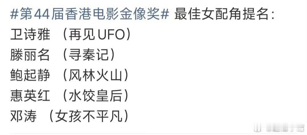 金像奖提名新鲜出炉!章子怡《酱园弄》、马丽《水饺皇后》提名金像奖影后;杨幂、赵丽颖未提名金像奖最佳女配角!