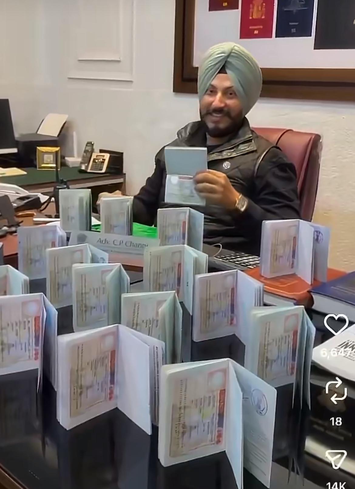 印度移民中介晒签证,桌上摆放的全都是他弄到的签证,在外网上被称为“签证之王”看得出来他干这一行賺了不少,戴着一块30万美金的表,众所周知,只想要润到加拿大,就必须交一笔巨额中介费去办理签证,中介简直一本万利