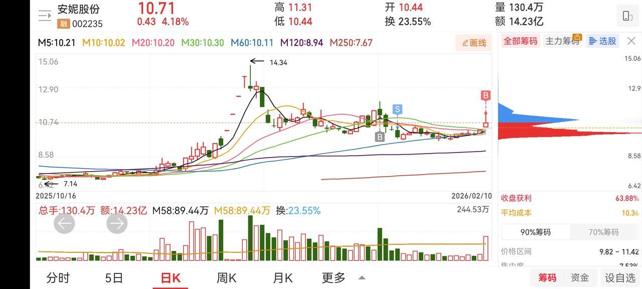 尾盘止损盈新发展、利群股股。卖出协鑫集成。买入安妮股份。安妮股份前期想搏一下反包,没有成功。经过一段时间的横盘,今日放量站上10.54元的阻力位,尾盘再次介入。