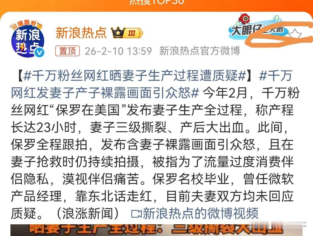 这样的无良网红实在是太令人发指了。为了流量竟然直播妻子生产时的裸露画面。 简直是毫无人性。 并且在妻子抢救时仍在拍摄。 这真的是为了流量已经没有了丝毫的底线。 真的是悲哀,居然嫁给了这样一个男人。