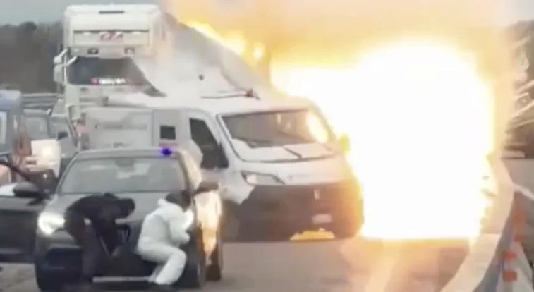 持枪悍匪高速路欲劫运钞车,风格彪悍手法专业 意大利南部9日晨发生一起武装抢劫运钞车事件,场景如电影一般火爆。事发地点位于意大利南部连接莱切和布林迪西的高速公路上。手持AK冲锋枪的六至八名蒙面劫匪,伏击了一辆装甲运钞车,袭击者将一辆厢式货车横停在道路中央并点燃,企图迫使运钞车停驶。 过路者手机拍摄的画面记显示,身着黑白连体工作服的劫匪曾在车辆上安装蓝色警灯,意图伪装成警用车辆。劫匪随后在运钞车上引爆爆炸装置,但泡沫安全装置被触发,最终挫败了抢劫企图。劫匪还在现场与随后赶来的意大利宪兵队人员开枪互射。 该团伙逃离现场时,据称劫持了过往车辆以突破警方封锁线。当局随后证实已有两人被捕,其余人员仍在逃。事件中未造成人员伤亡。
