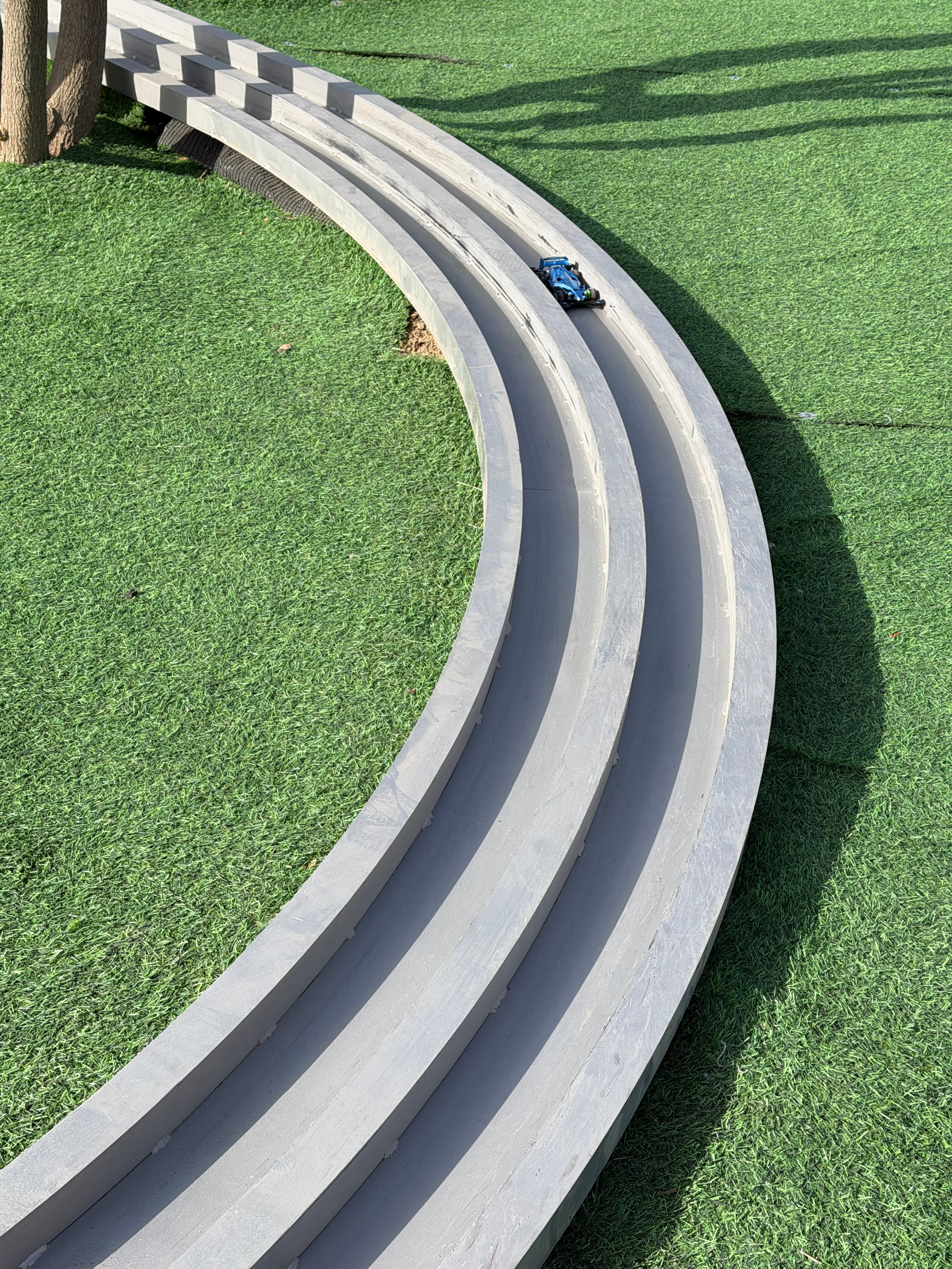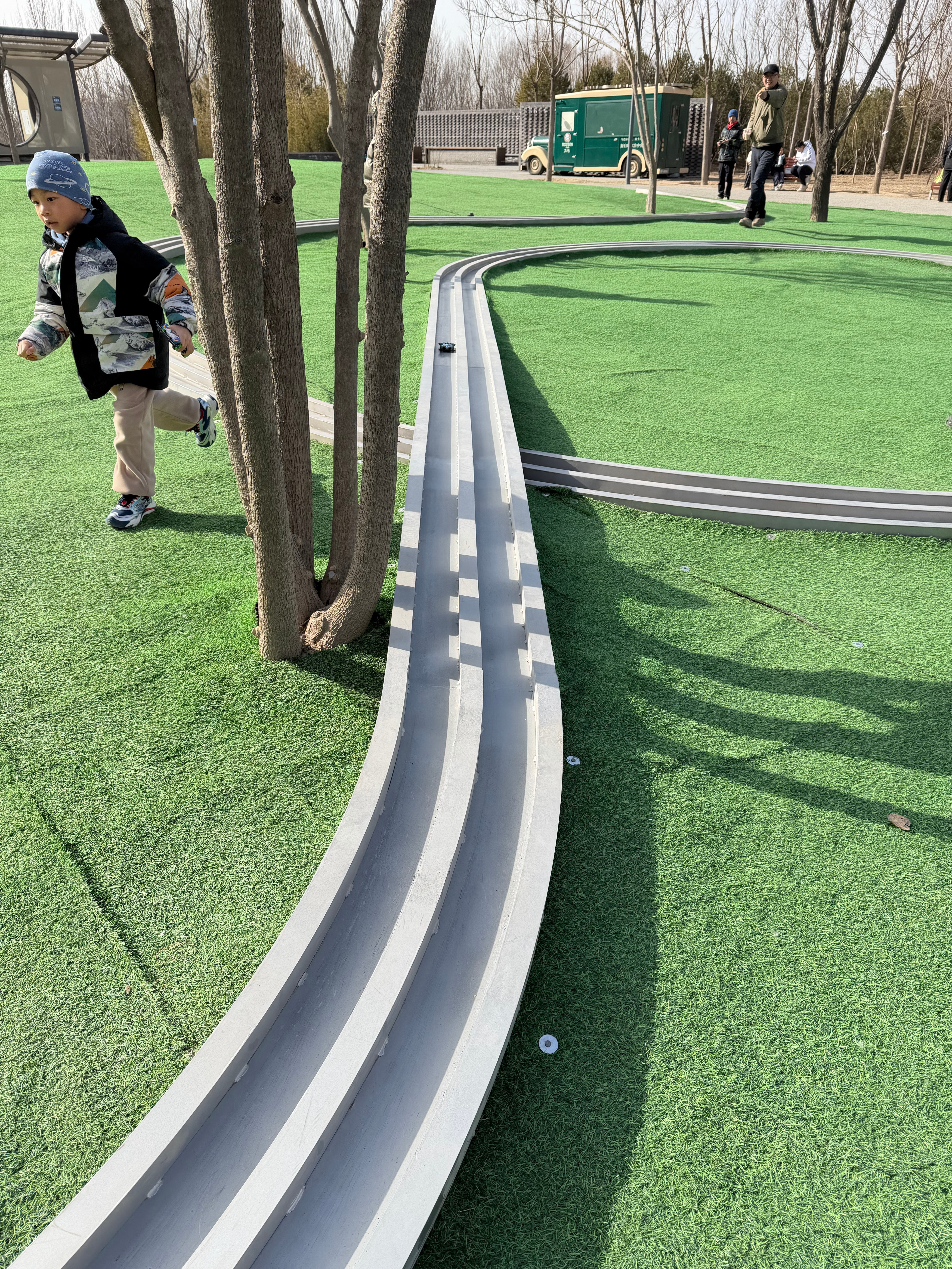 看很多网友种草北京温榆河公园的这个四驱车赛道,今天终于来了实地打卡看一看,稍微有点失望,赛道没想象中规模大,也就三个大弯儿,赛道是两条水泥砌的,好在不是周末,工作日上午人不多,基本都是大人带着孩子来玩的。80/90后来实现儿时梦想吧!地点:打车直接到温榆河公园12号门。自驾:定位温榆河公园P13停车场。 北京·温榆河公园