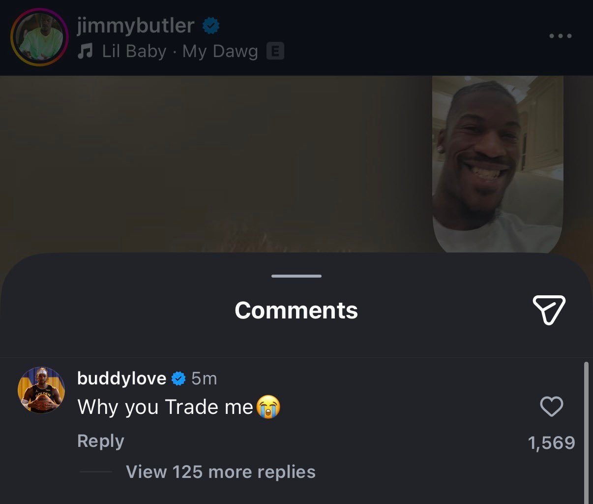 希尔德在吉米-巴特勒ins下面留言:为什么要交易我😭?”