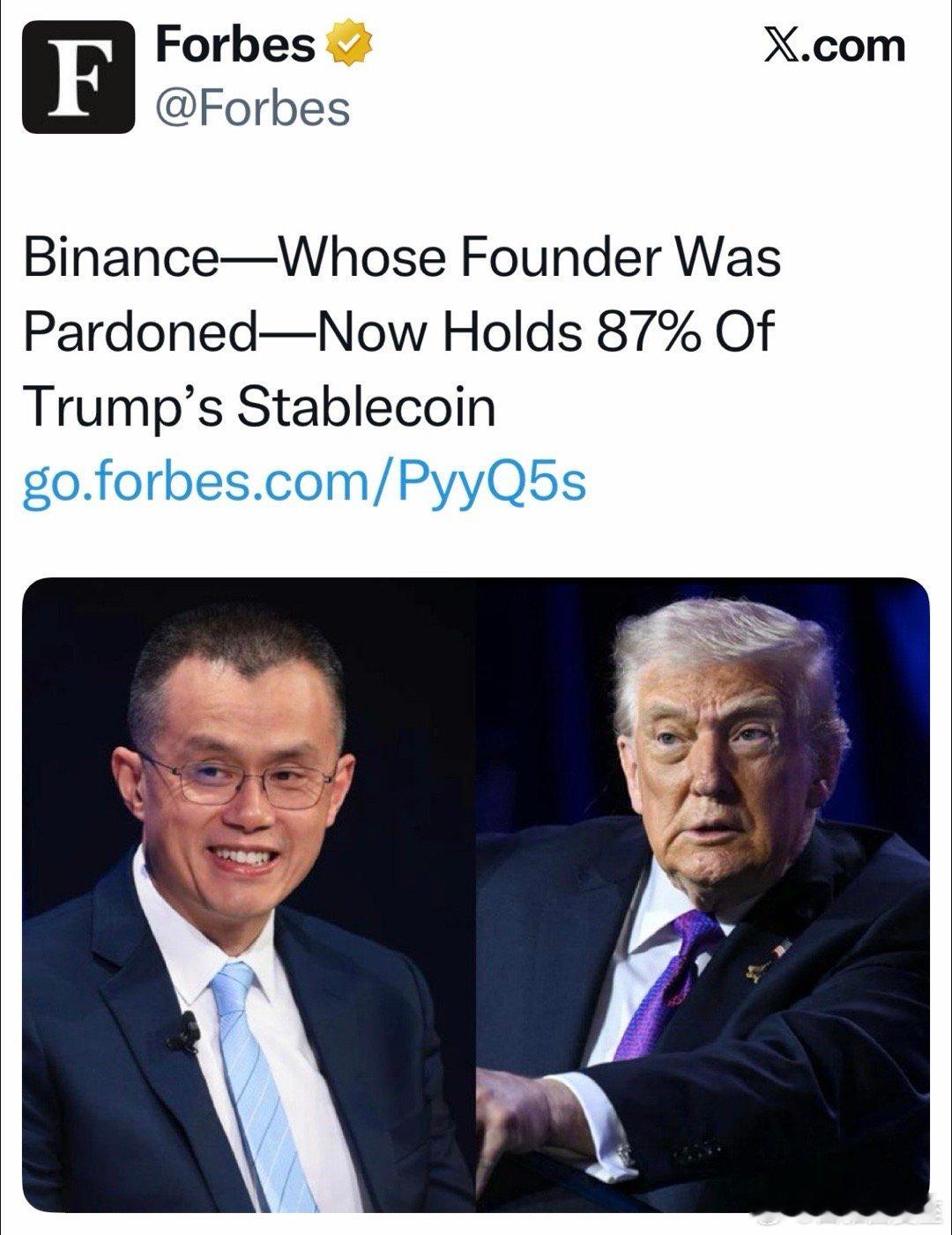 Trump家发行的币,87%由同一个“投资者”拥有:Binance(其创始人“协