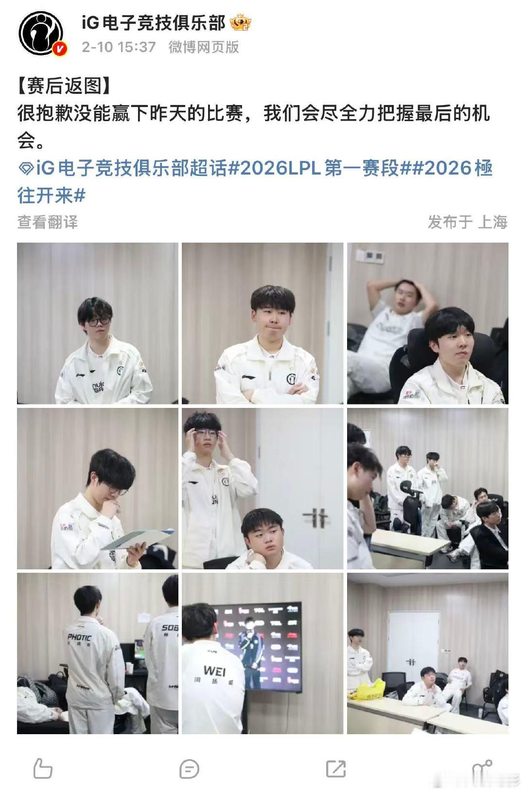 iG回应输给NIPiG称抱歉没能赢下比赛 2月9日,2026LPL第一赛段 对战,NIP拿下第四局比赛胜利,赢下比赛!10日,iG发文回应输给NIP“很抱歉没能赢下昨天的比赛,我们会尽全力把握最后的机会。 ”