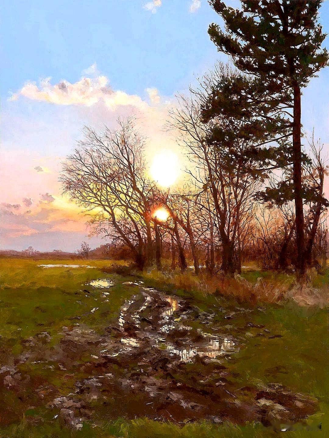 摒弃摄影参考的捷径,他执着于户外写生,以印象派的灵动笔触,糅合明快而醇厚的色彩,