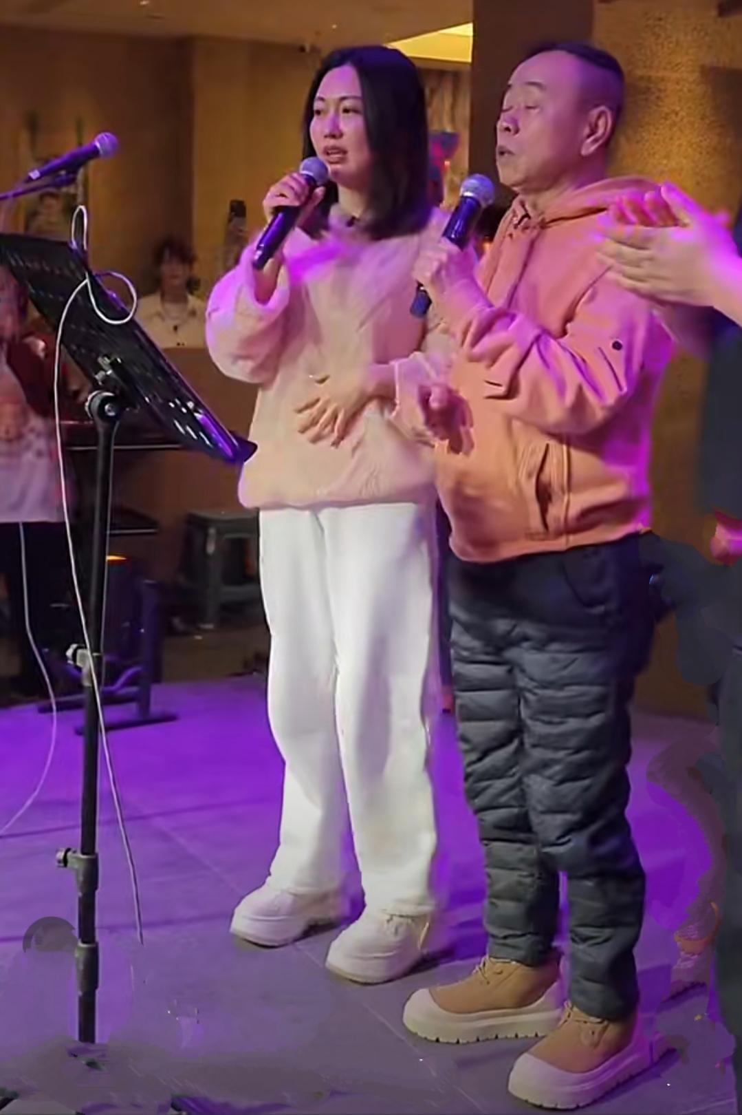 潘长江老师和女儿潘阳现身沈阳中街,潘长江穿着蓝色羽绒裤,粉色连帽卫衣,头戴灰色毛线帽,卡其色厚底雪地靴,显得整个人年轻阳光;女儿长发飘飘,同样穿了鞋底很厚的运动鞋。父女二人在中街品尝美食,在舞台表演节目,和粉丝合影,忙的不亦乐乎。
