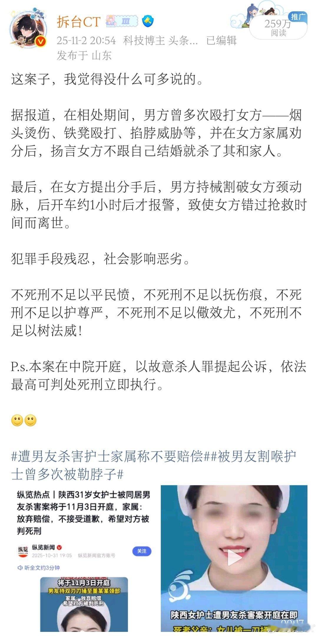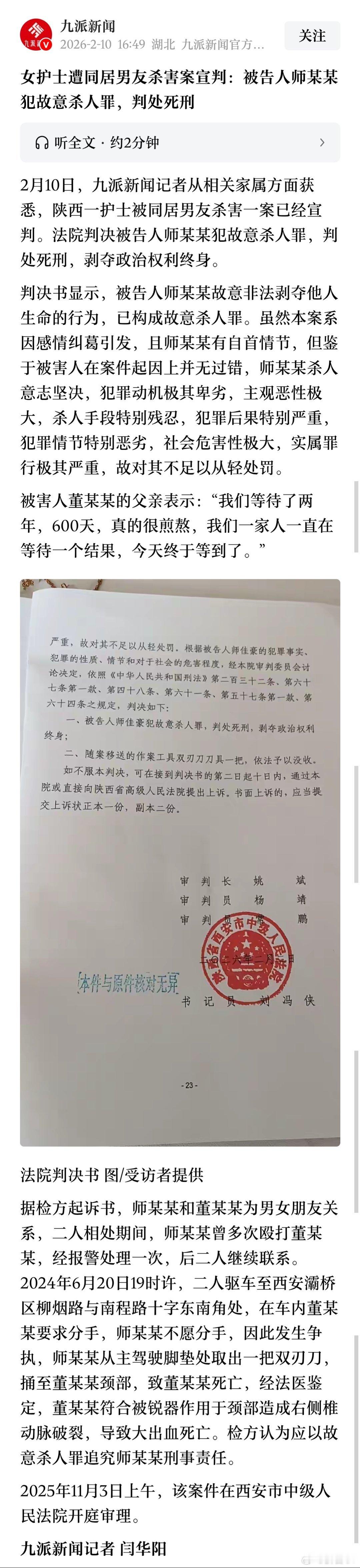 刚刚看到,女护士被同居男友杀害案一审宣判。