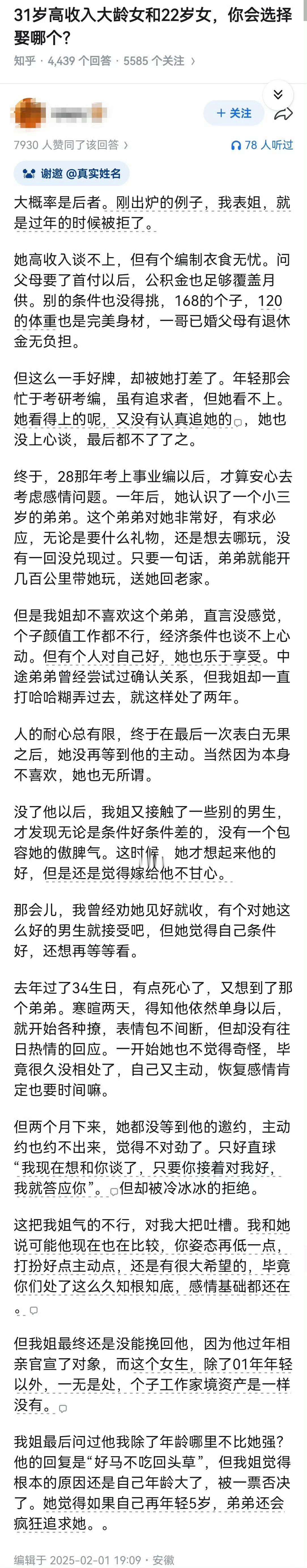31岁高收入大龄女和22岁普通女,你会选择娶哪个?