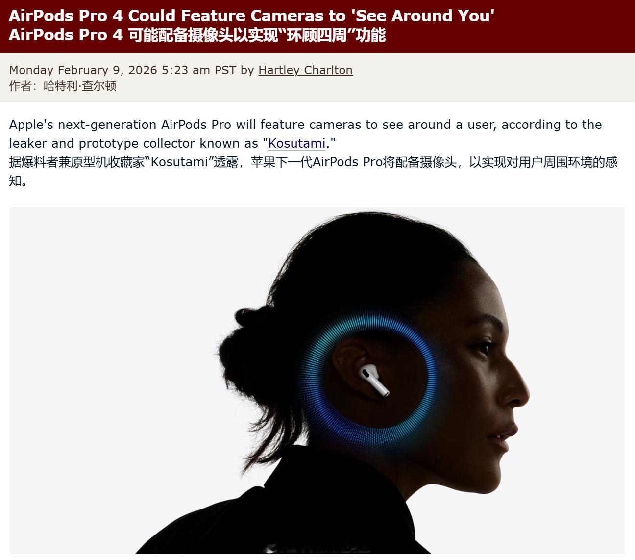 Kosutami 爆料,苹果下一代 AirPods Pro 将会搭载红外摄像头,用来感知周围环境,售价保持 249 美元不变,所以说国行价格应该也会维持原样。