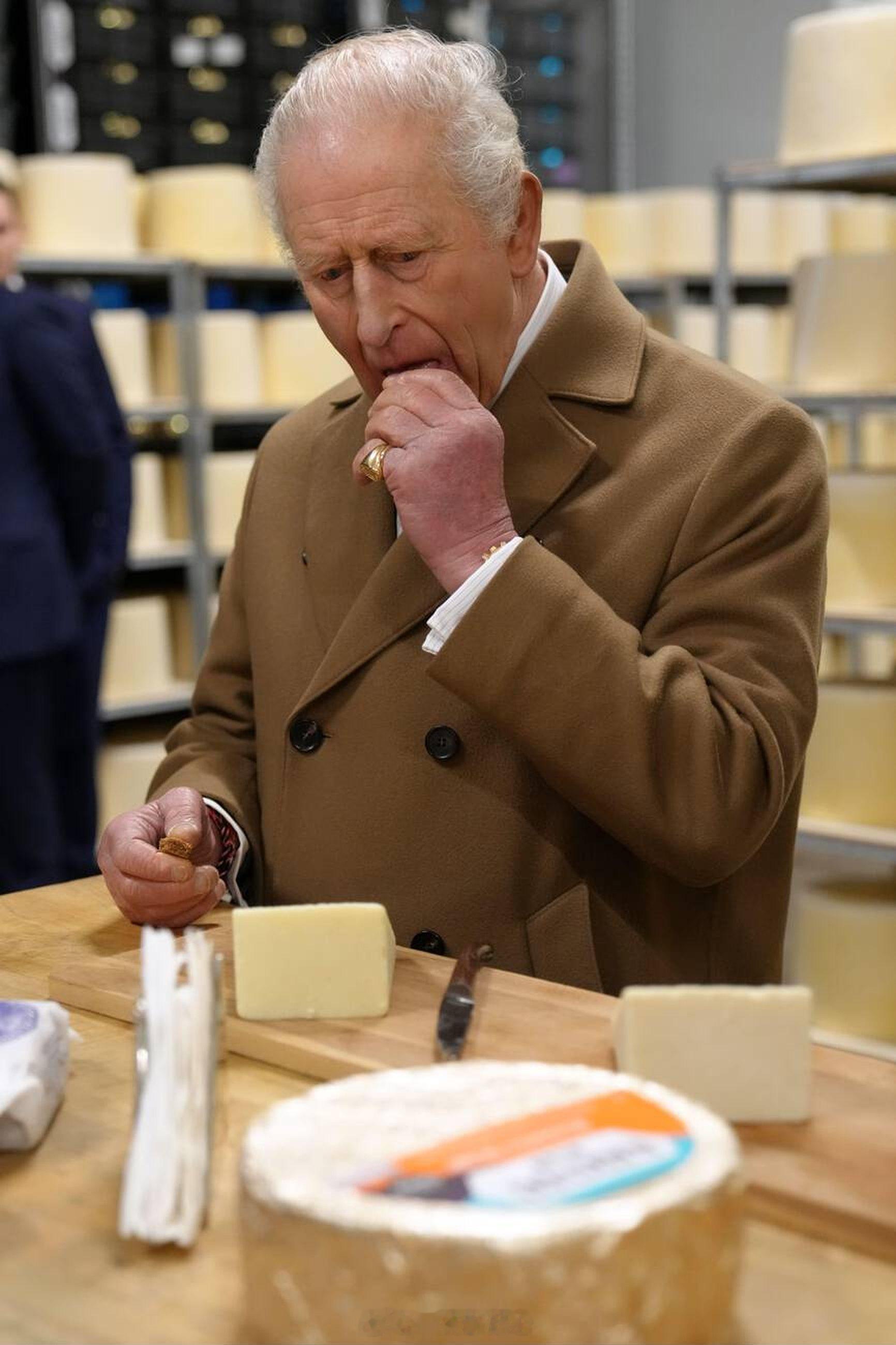 2026年2月9日,查尔斯三世作为兰开斯特公爵身份在兰开夏郡访问奶酪工厂,并品尝当地出品的奶酪芝士🧀