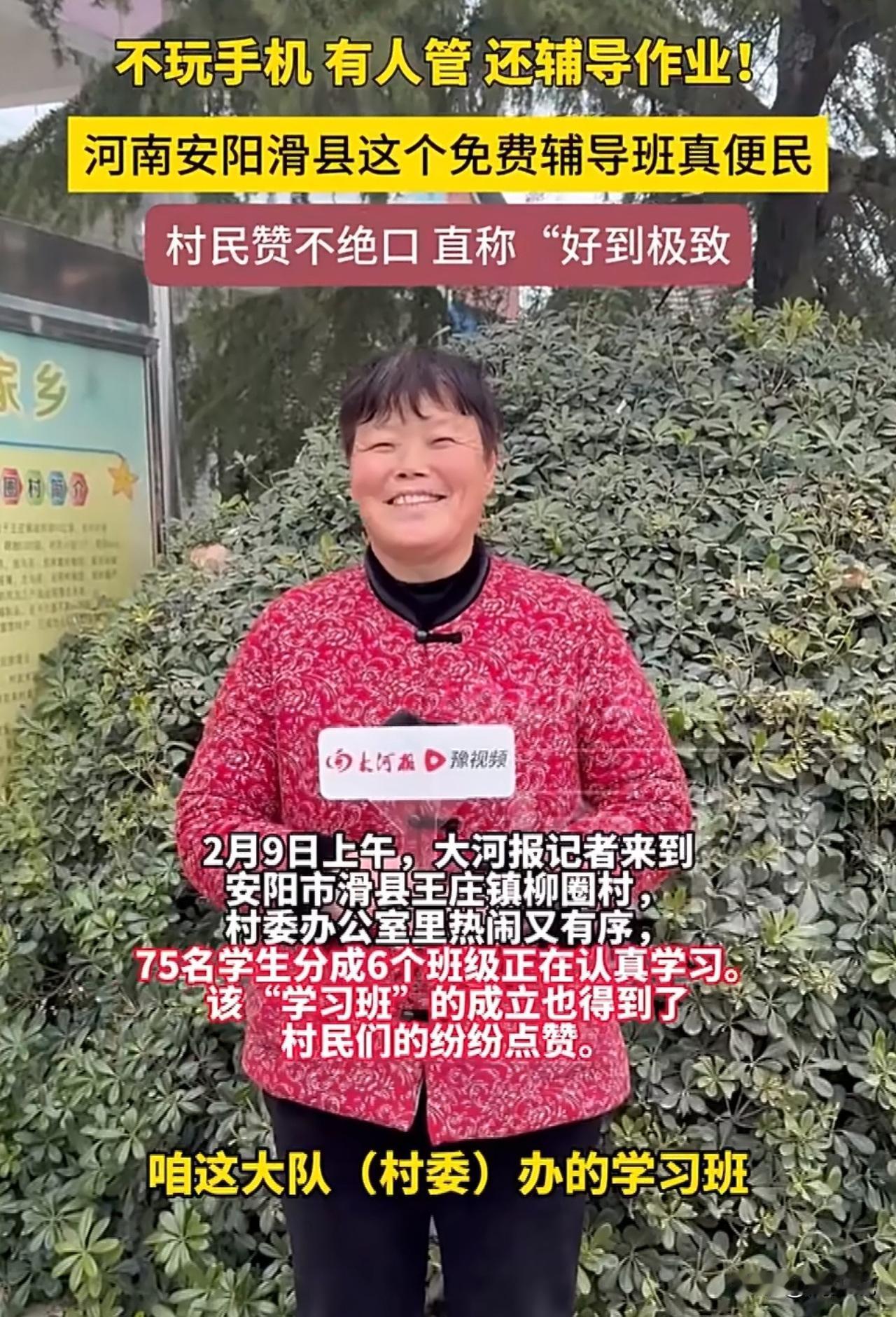 #村支书办寒假辅导班腾出空调房当教室#“这波操作太圈粉!”河南安阳一个村子,竟靠一场免费辅导火爆全网。滑县王庄镇柳圈村,寒假一到,不少孩子沉迷手机、无人看管,家长愁得睡不着。39岁村支书翟书记干脆腾出空调房,免费给中小学生辅导功课。开班才4天,就来了75个孩子,分出6个班,连外村家长都慕名把娃送来。 对于村支书免费办寒假辅导班,众多网友纷纷留言:“这样的村支书太难得了,把孩子放这儿,踏实又放心!” 更还有网友表示:“村里能有这份心意,比啥都强。” 看完这位村支书的举动,周少不得不说真的被感动到了,这不止是简单的看娃托管,更是基层对乡村教育的用心。 没有华丽的场地,却把最实在的温暖给到孩子和家庭。对不少留守家庭来说,有人愿意搭把手、守一守,就是最珍贵的支持。 基层治理从不是喊口号,把家长的烦心事放在心上,把孩子的成长挂在嘴边,一点点做实做细,就能暖透人心。 这样的暖心举动,不妨多一些、再久一些,让乡村的孩子,都能被温柔守护。#寻美三湘#