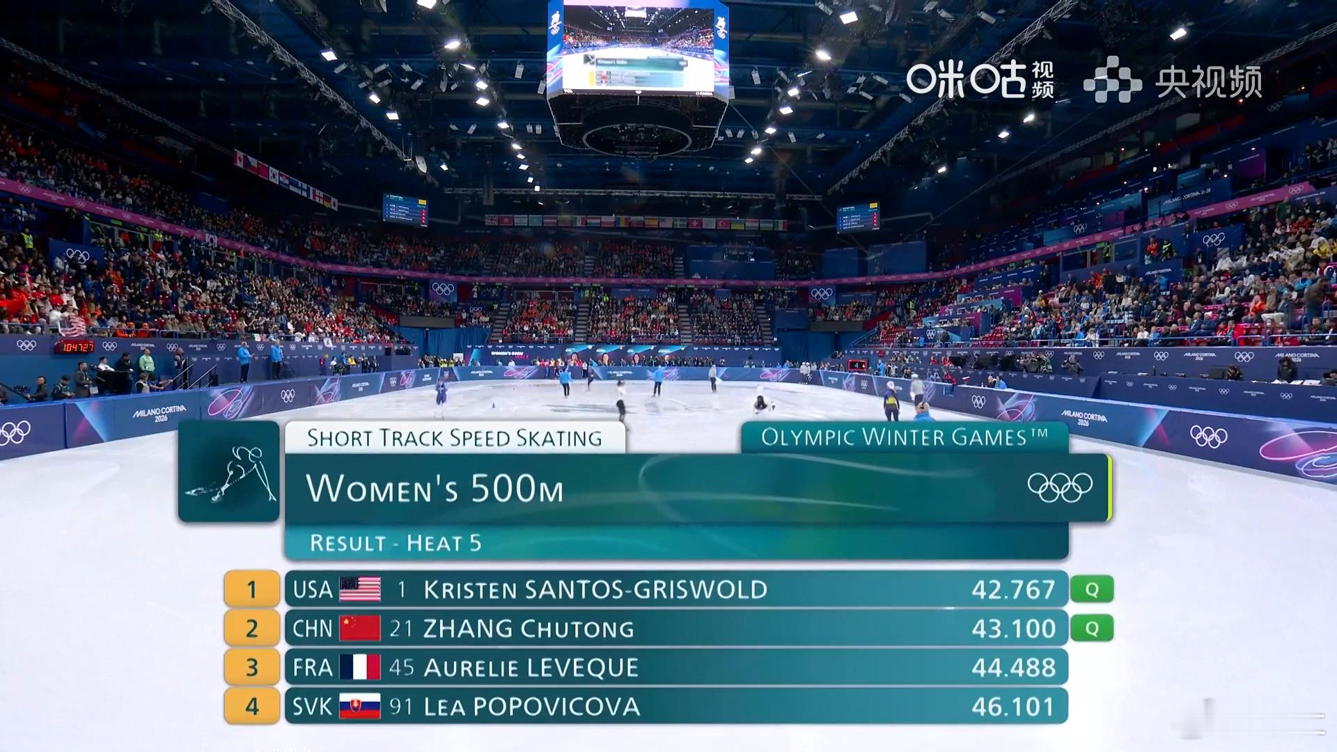 女子短道速滑500米预赛 张楚桐获得小组第二,顺利晋级1/4决赛。成绩为43.100,和小组第一差距很小,1/4决赛继续加油张楚桐500米小组第二张楚桐500米顺利晋级