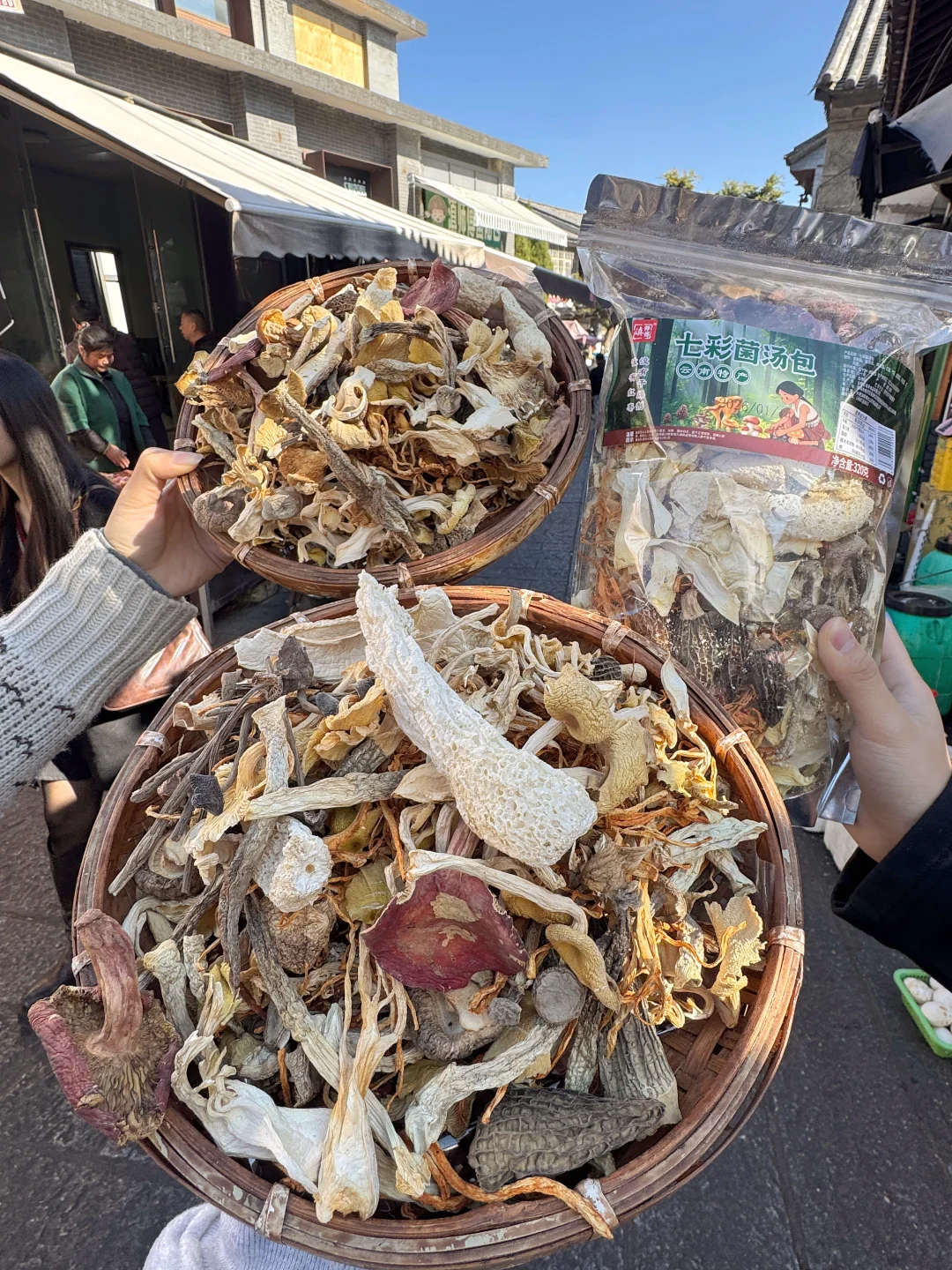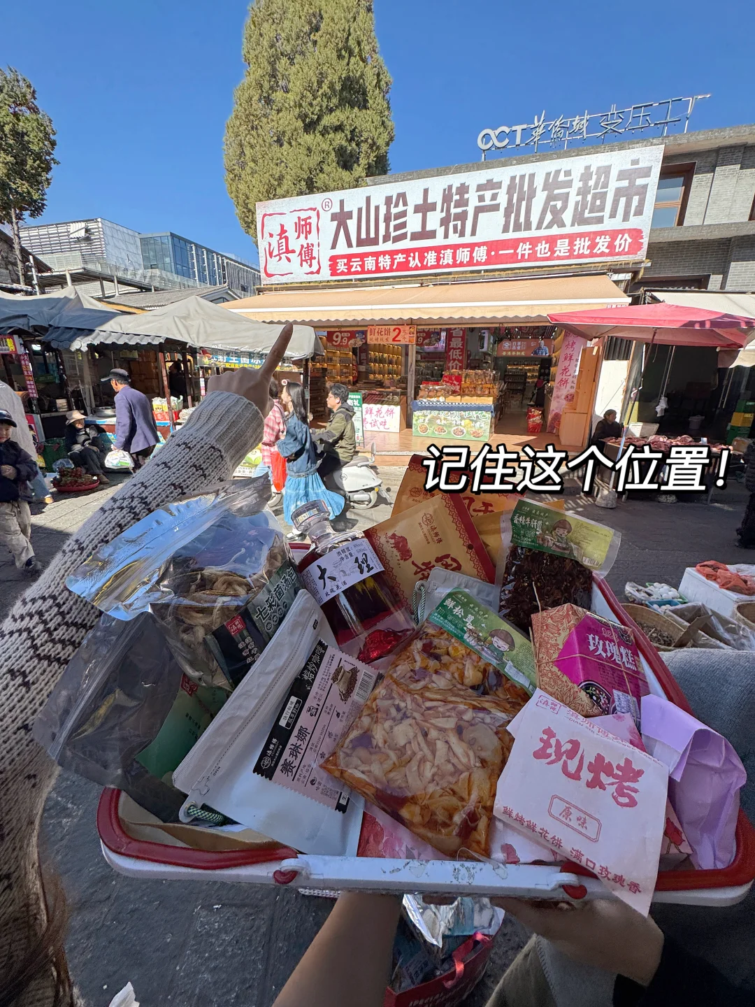 不敢想象住在大理古城的姐妹有多幸福!!四大袋才花的了不到三百!价格低至9r巨划算啊啊啊!!琳琅满目的柜台摆放了数十种菌菇汤包、零食、手工鲜花饼、过桥米线、牛肉干、果酒、云南咖啡豆…都太诱人了!恨不得都打包带走!! 📍开在北门市场巷子里、叫【大山珍土特产批发超市】 姐妹们信我!!果酒太好喝了!一开始被颜值吸引,有很多种口味,可以根据自己的喜好试试!还有鲜卤!现烤的鲜花饼比外面那些网红店好吃!试吃完还买了好多送了朋友当伴手礼👍🏻都夸好吃!!