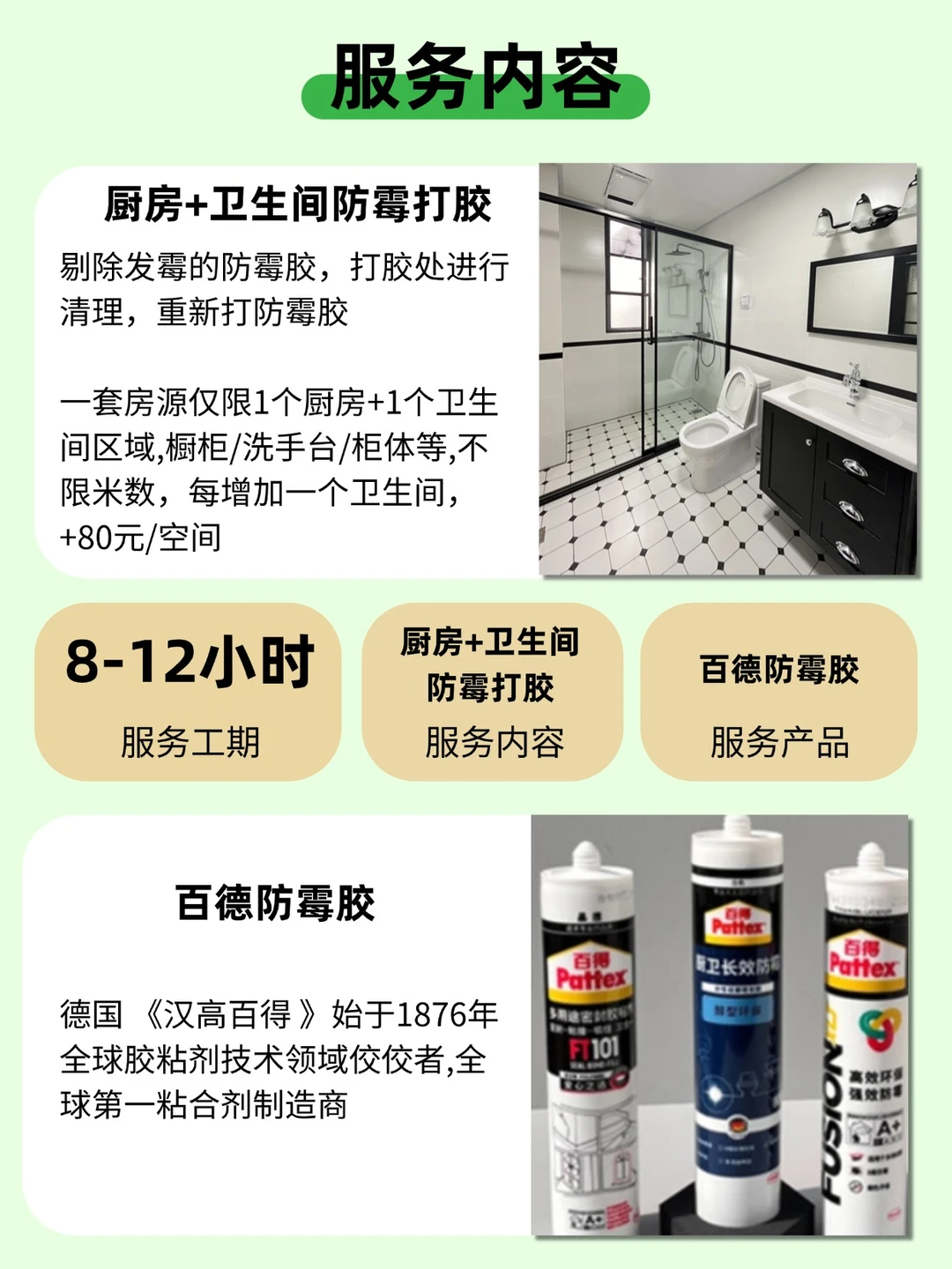 现在正好!春节限时补贴💥:309元就能给1个厨房+1个卫生间焕新防霉胶