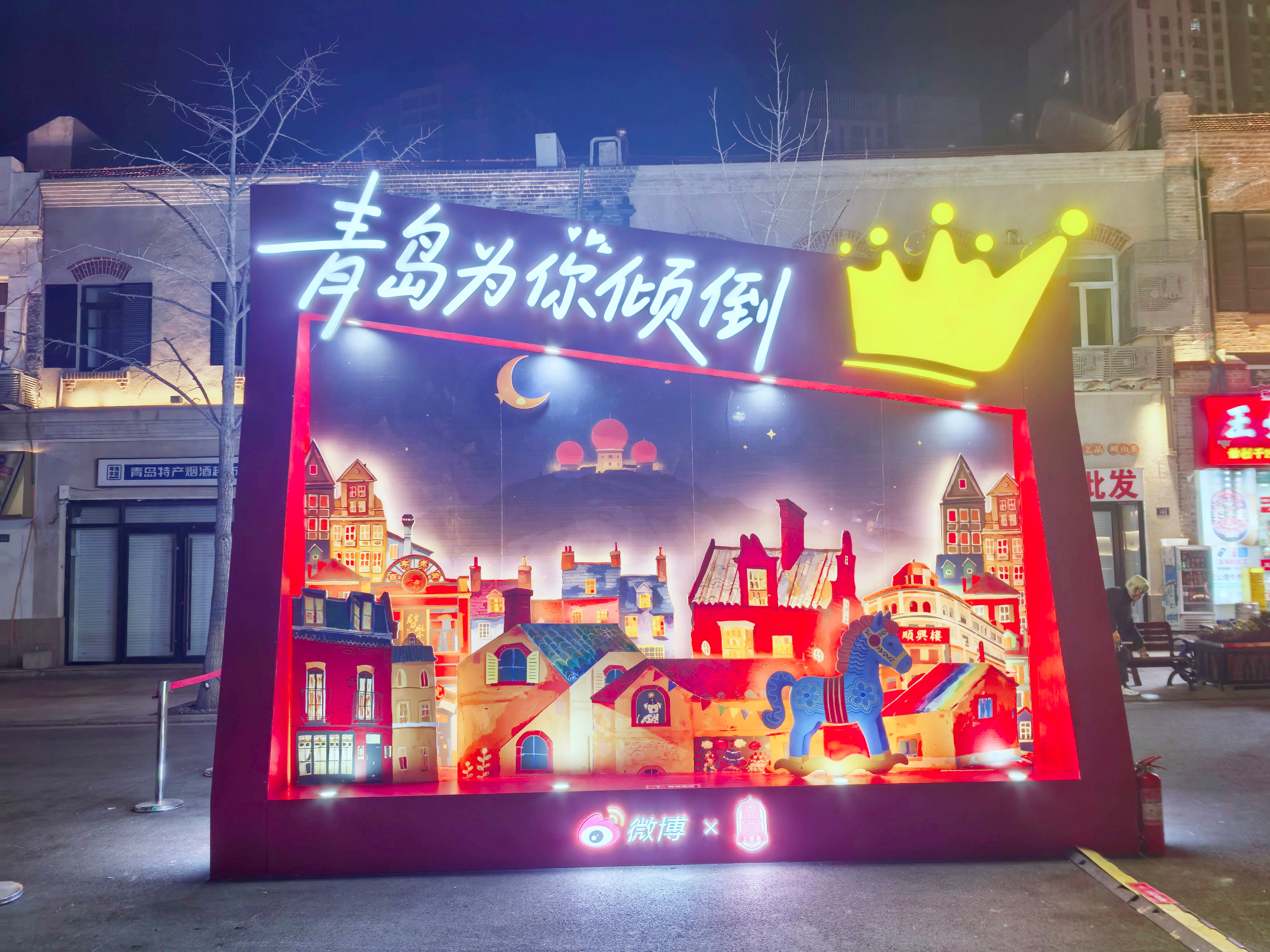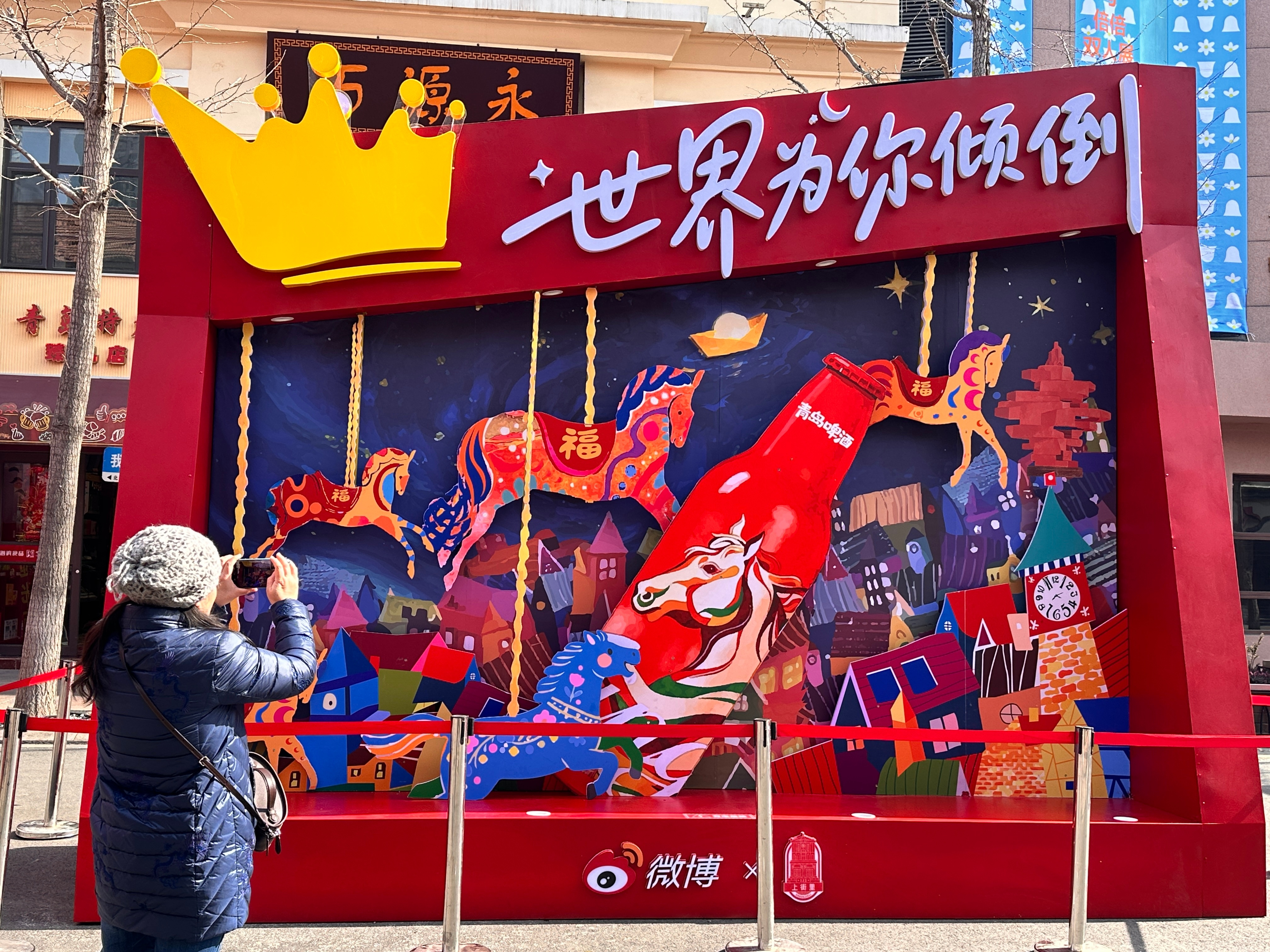 青岛的新年,被这座青啤大装置彻底点亮。远远就能看到青啤的瓶身造型,靠近后更能感受到满满的福气寓意。新的一年,从举杯开始,把好运全部接住。举杯青岛福气倾倒在青岛举杯接福