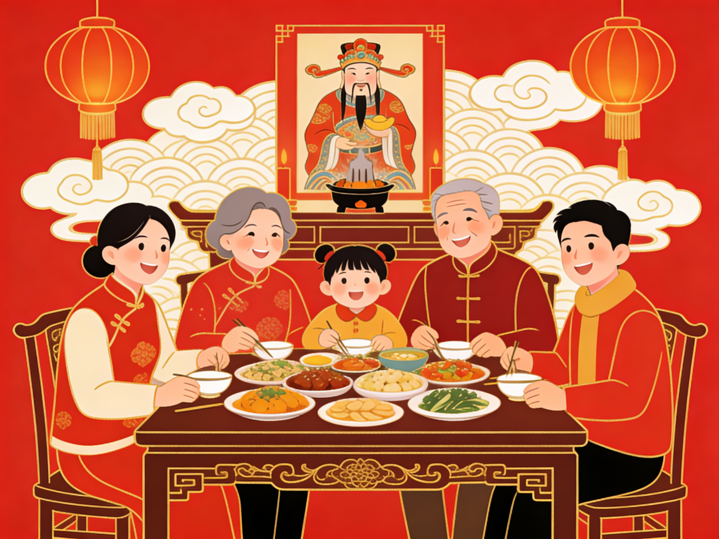 是一家人围坐吃的那顿团圆饭——北方吃饺子寓意"更岁交子",南方吃年糕祈愿"年年高升",汤圆里裹着甜,也裹着团圆的执念。
