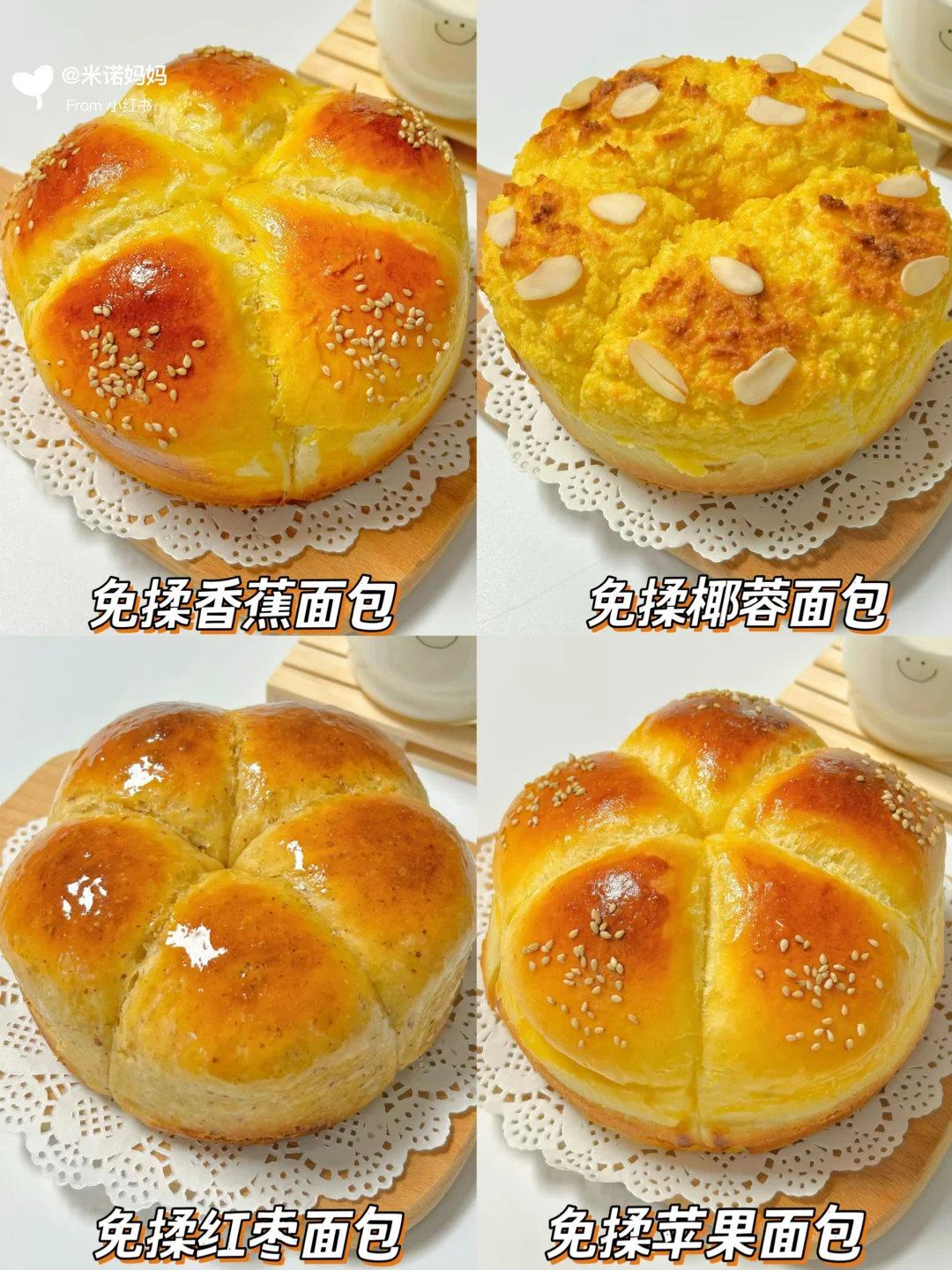 4️⃣免揉苹果面包