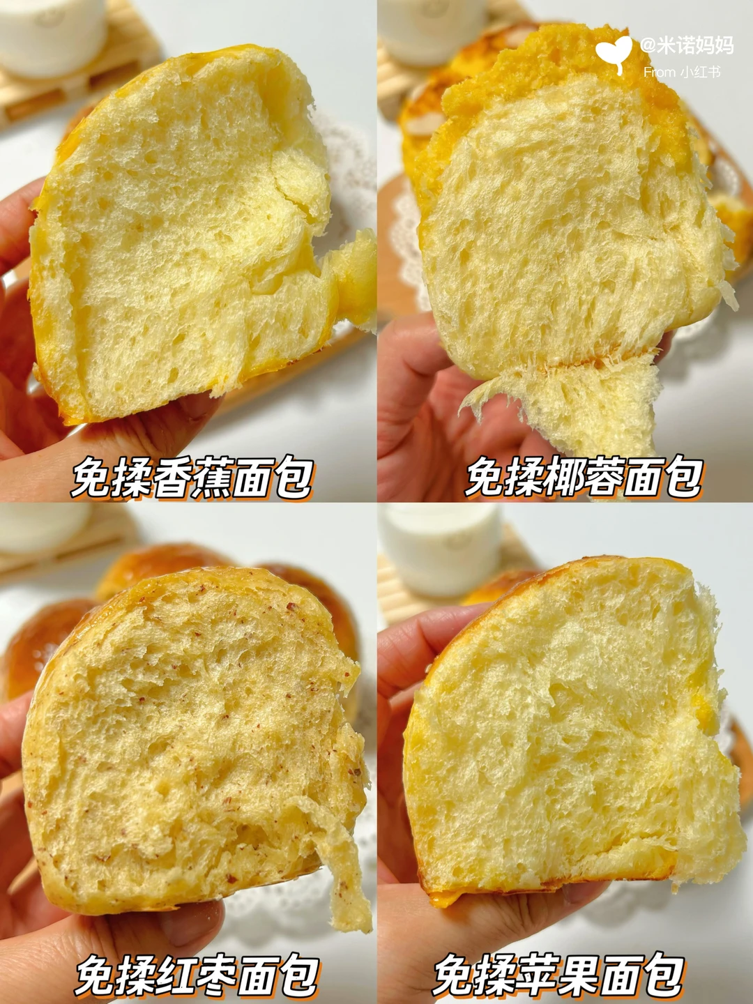 分享4款超好吃的免揉手撕面包🍞