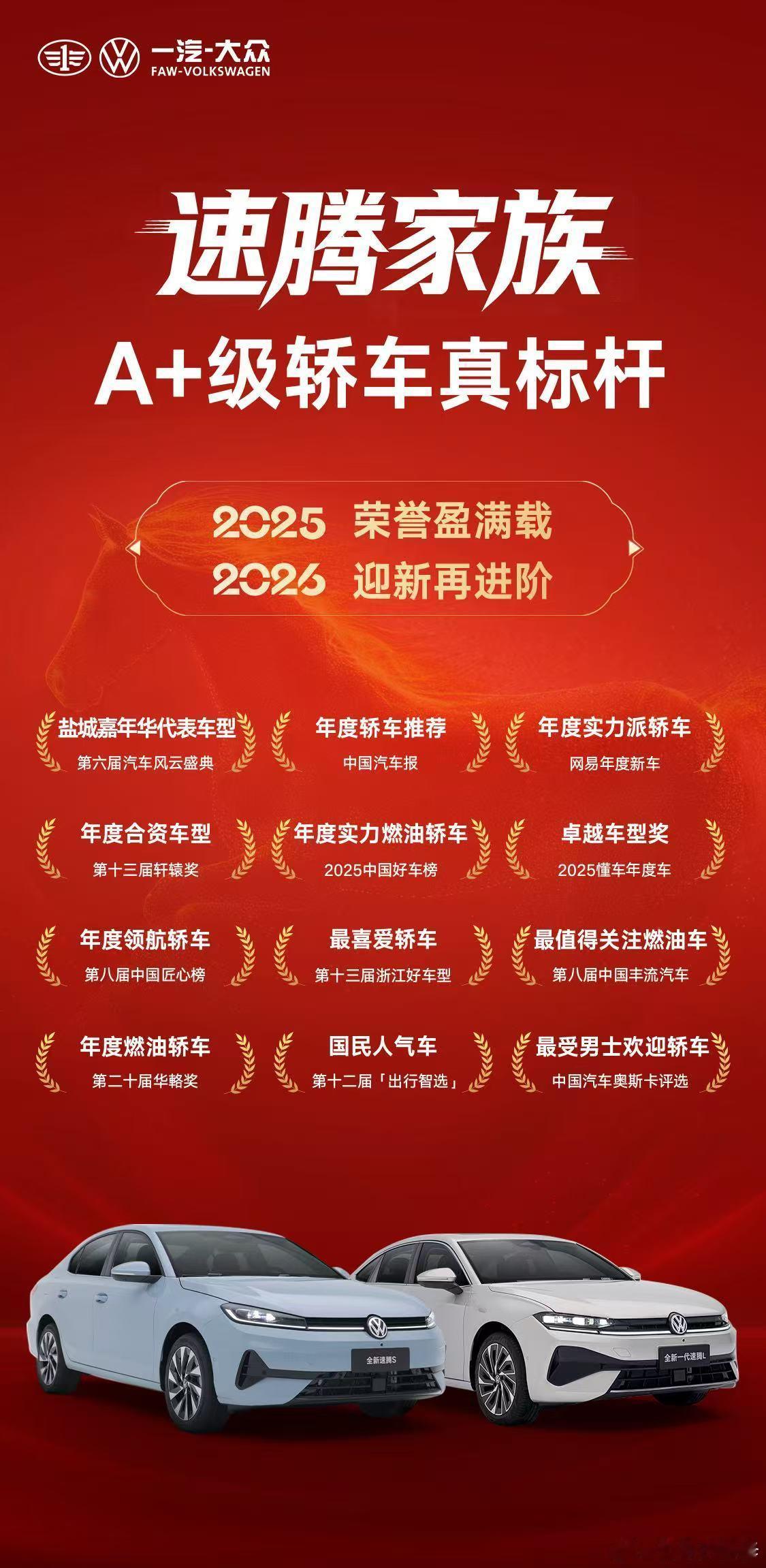 2025 荣誉收官,速腾家族稳坐A+级轿车真标杆!2026 迎新进阶,全新速腾S焕新而来,重新定义国民家轿舒适与品质。标杆之上,再启新篇🔥