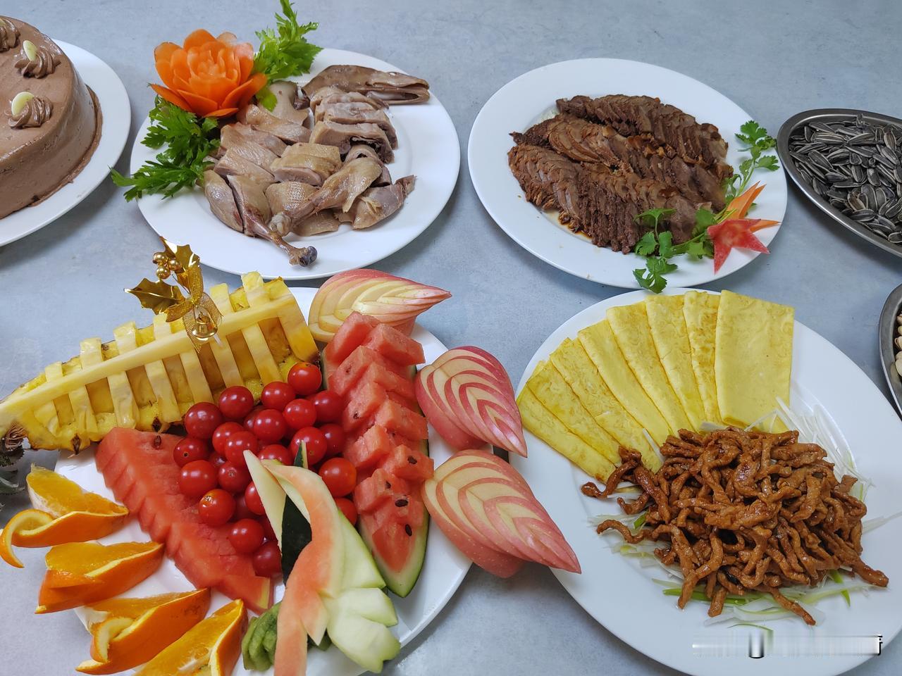 再有六天就要过春节了,以前的这个时候我都开始为春节聚餐做考虑了,提前列个菜谱,安排多少个菜?怎样搭配?怎么做合适? 今年好了,不用这么早操心了,元旦聚餐的时候,我安排了14个菜,没有吃完,领导说春节聚餐可以少做几个菜,一方面还要考虑伙食的费用,另一方面,少做几个菜我就不用那么辛苦了,够吃就好,那就这么定了,春节就安排12个菜吧,只是苦了日夜漂泊在海上的兄弟们! 下图是去年和前年的年夜饭,都是17—18个菜。