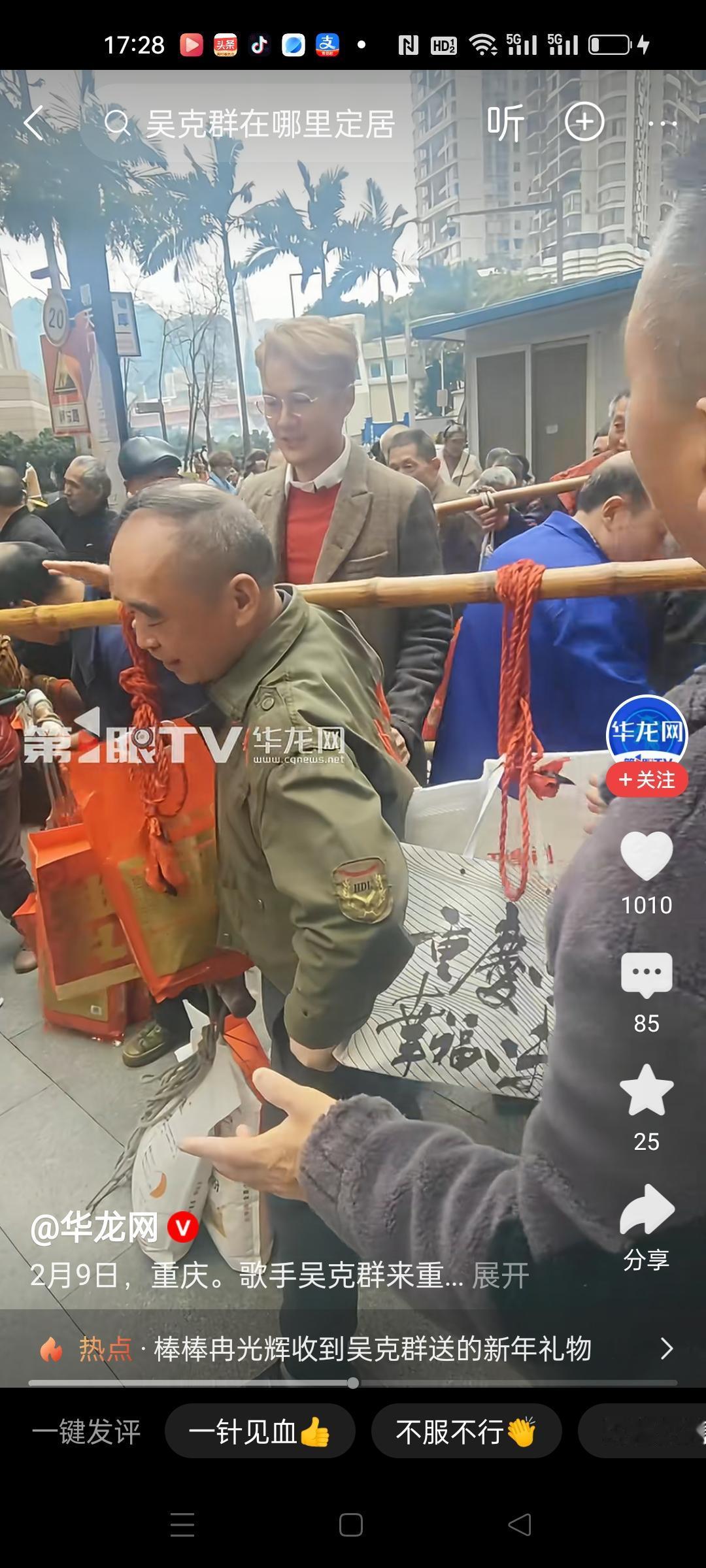 吴克群到重庆给棒棒军发礼物啦! 一个台湾艺人坚持在国内坚持基层助农和帮扶弱势群体,这是一种什么精神? 反正做好事就是好人,不管是作秀还是炒热度,做总比不做得好。 我到希望更多艺人来做这样的秀,那样就会有劳动群众收益,虽然是一时,那也未尝不可啊! 吴克群说自己祖籍是四川遂宁的,既然是四川人,当然多要帮助一下四川老乡啊,小吴老师,重庆欢迎你回家!