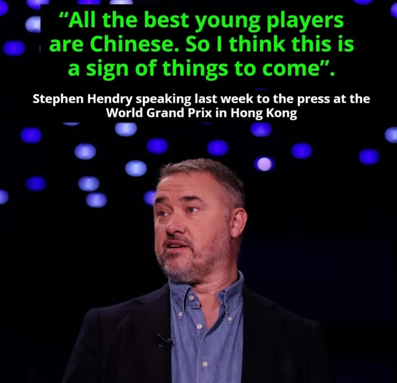 正如亨德利所说,中国球员现在开始主宰巡回赛,他们赢得世锦赛冠军只是时间问题,赵心童就做到了,这充分展现了中国球员的实力,我相信这与斯诺克在中国的蓬勃发展有关。