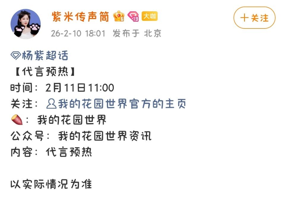 我记得上次还是《国色芳华》的梦幻联动现在杨紫直接代言“我的花园世界”啦针