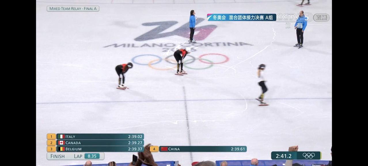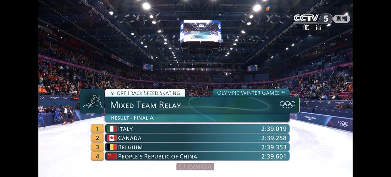 短道速滑混合接力中国队痛失金牌!实在是太可惜了,前半程中国队一直领先,结果最后6圈张楚桐失误被方塔娜反超,最后时刻孙龙致命失误直接掉到最后[捂脸]不过中国队本来也不是夺冠头号大热,能进决赛也不错了。不过没想到夺冠的不是加拿大,而是东道主意大利。36岁老将方塔娜真的太强了,从都灵滑到米兰,六次参加奥运会拿到3金4银5铜!真的太牛了!