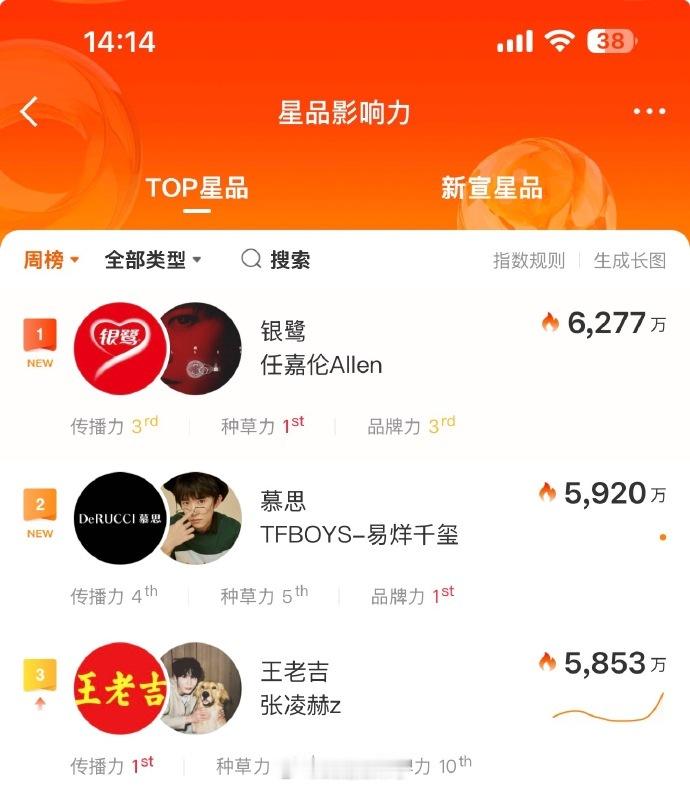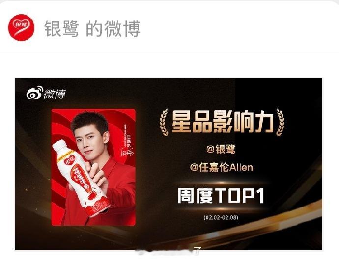 恭喜任嘉伦✖️银鹭拿下星品影响力周度Top一