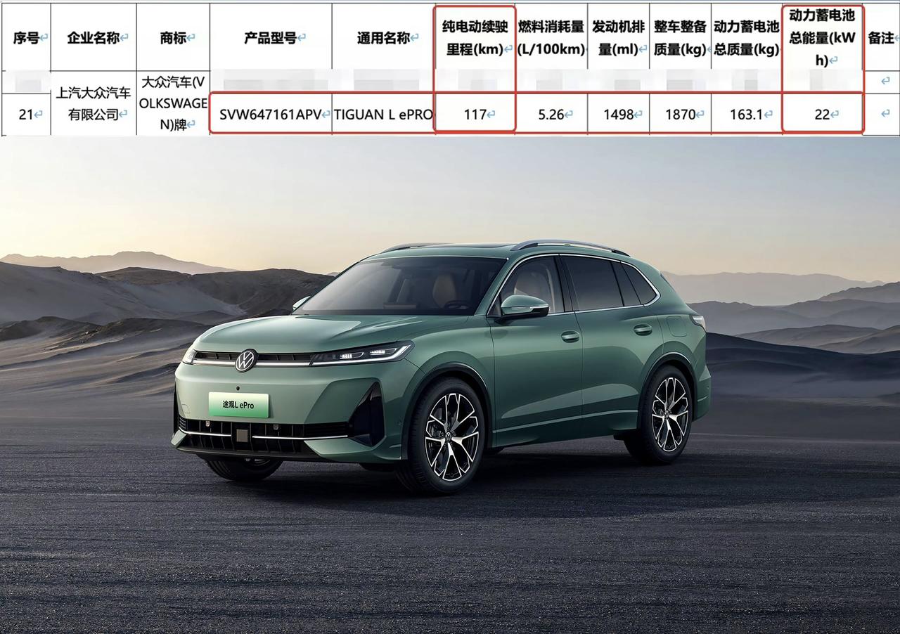 大众全新途观L ePro申报图曝光,这插混中型SUV看点十足。车长4744,轴距2791,空间表现应该不错。它搭载1.5T插电混动系统,配22kWh电池组,工信部纯电续航达117公里,综合续航突破1300公里,完全没续航焦虑。 外观上,前脸进行新能源风格重塑,传统大尺寸进气格栅大幅缩小,换成大面积同色饰板,两侧导风槽超有运动感。全LED贯穿式灯带和可发光Logo,科技感拉满。车尾简化贯穿尾灯结构、用隐藏式排气,简洁又稳重。预计6月上市,很期待实车表现!