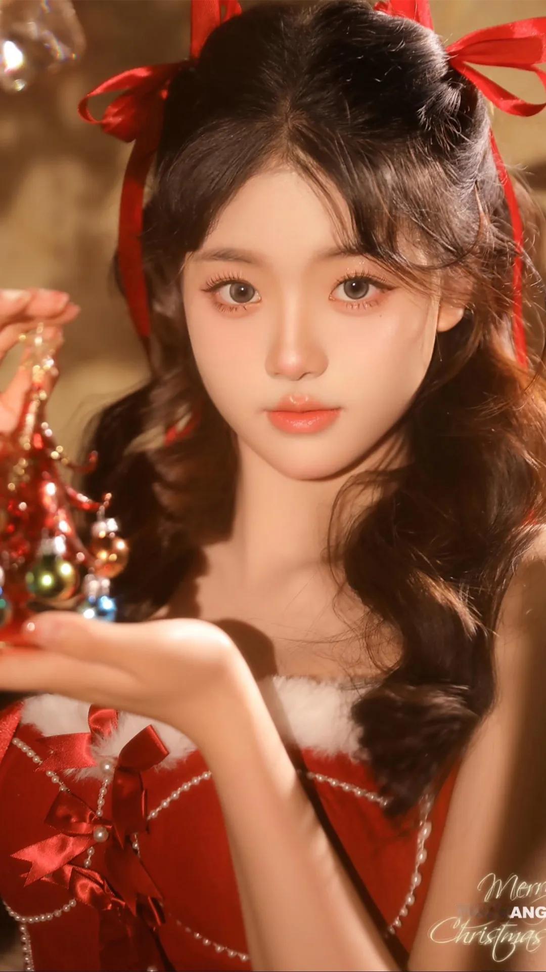 圣诞红裙少女,甜美可爱,节日氛围满满!🎄💖