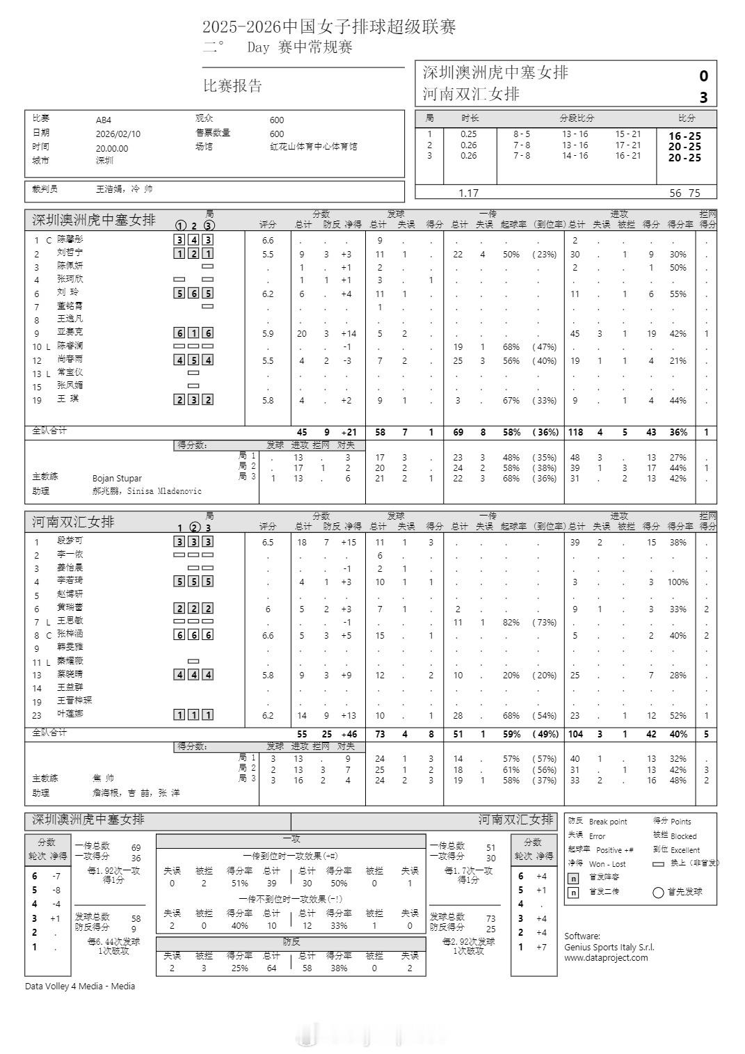 【排超女排联赛升降赛浙豫双杀辽深】排超联赛 2月10日,排超女排联赛升降赛第二回合结束,浙江和河南分别再次战胜辽宁和深圳,两回合双杀对手,将参加A级季后赛。辽宁和深圳进入B级季后赛。本轮比分如下:浙江3-0(25-8/25-23/25-21)辽宁深圳0-3(16-25/20-25/20-25)河南