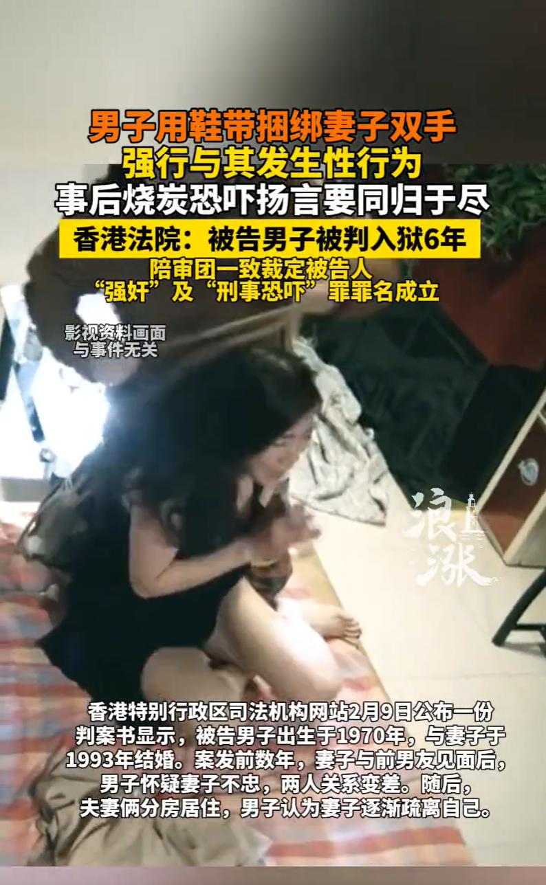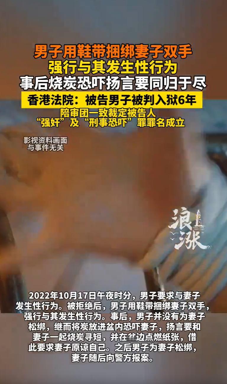 一52岁男子因怀疑妻子与前男友有染,在多年前就分房睡。后来,男子试图重拾亲密,却被妻子严词拒绝。不料,男子一股无名火猛然窜起,顺手抄起床边的鞋带,死死捆住了妻子的双手,不顾她的挣扎与哭泣,强行与她发生了关 系。男子发泄完怒气后,没有解开束缚,反而搬来一个铁盆,倒入黑漆漆的木炭。男子蹲在床边,声音低沉而骇人:“不如我们一起走算了。” 说着,他用打火机点燃手中的纸,逼迫妻子原谅。妻子含泪点头,男子才解开了那早已勒出红痕的鞋带。然而,妻子在他松绑后,立刻逃离并报警。等待男子的,却是牢狱之灾。   陈启明与李婉雯结婚30多年。   1993年,陈启明与李婉雯满怀憧憬地结为连理,也曾有过温馨的日常与相互扶持的岁月。   然而,时间的长河冲刷之下,激情难免褪色,生活的琐碎与平淡成为主调,经常发生争吵。   在一次偶然的机会下,李婉雯与昔日前男友重逢并见面。   此事不知如何传入了陈启明的耳中,在他心中投下了巨大的阴影,怀疑的种子一旦种下,便在猜忌的浇灌下疯狂滋长。   陈启明开始怀疑妻子对自己不忠,认为那次见面是旧情复燃的征兆。   由此,夫妻关系急转直下,争吵、冷战取代了沟通与理解,情感的隔阂最终演变成空间上的隔离,两人开始了分房而居的生活。   在同一屋檐下,他们却活成了最熟悉的陌生人。   陈启明内心充满了痛苦与愤懑,他感到妻子正在“逐渐疏离”自己,昔日的爱人变得冷漠而遥远。   2022年10月17日,或许是被长期的压抑和猜忌冲昏了头脑,或许是试图以极端方式找回对关系的掌控感,陈启明在这一夜,走向了无法回头的犯罪之路。   他走进了李婉雯的房间,提出了发生关系的要求,这在一个正常、健康的婚姻关系中,本应是夫妻亲密的互动之一。   然而,在他们当时已形同陌路、分居且毫无温情的情境下,这一要求显得突兀且充满压迫感,李婉雯明确地、坚决地拒绝了。   陈启明没有试图沟通,而是选择强行贯彻自己的意志。   他找来鞋带,用以捆绑妻子李婉雯的双手。   在妻子双手被缚、丧失自由反抗能力的情况下,陈启明强行与她发生了关 系。   然而,罪行并未就此停止。   事后,陈启明并未立即为妻子松绑,反而将事态推向另一个更令人恐惧的层面,他取来了炭盆,将炭块放入盆内,并向被捆绑着的李婉雯扬言,要和她一同“烧炭寻短”。   为了强化这种恐吓的效果,他甚至在炭盆边点燃了纸张,借此极端方式,要求妻子“原谅”自己先前实施的暴行。   李婉雯待陈启明最为其松绑后,抓住机会,果断向警方报案。   警方接报后迅速介入,将陈启明拘捕,开启了刑事司法程序。   经过庭审举证、质证和激烈的法庭辩论,陪审团退庭商议,达成了一致裁决:认定陈启明所被指控的“强 奸”及“刑事恐吓”两项罪名全部成立。   2026年2月9日,香港高等法院判处陈启明有期徒刑6年。   有人说,陈启明与李婉雯发生关系时还是夫妻关系,不应该认定为违法犯罪。   那么,从大陆刑法角度,陈启明的行为该如何定性呢?   《刑法》第236条规定,以暴力、胁迫或者其他手段强J妇女的,处三年以上十年以下有期徒刑。   本案中,陈启明使用鞋带捆绑妻子双手,在妻子明确拒绝后强行发生了关 系,完全符合以暴力手段违背妇女意志的核心构成要件。   司法实践已明确,在婚姻关系非正常存续期间,如感情破裂、分居等,丈夫违背妻子意志强行发生男女关 系,可构成强J罪。   这意味着,陈启明虽然与李婉雯系夫妻关系,其行为即便发生在大陆,其行为仍然构成违法犯罪,将被追究刑事责任。   此外,《刑法》第293条第二百九十三条规定,有下列寻衅滋事行为之一,破坏社会秩序的,处五年以下有期徒刑、拘役或者管制:(一)随意殴打他人,情节恶劣的;(二)追逐、拦截、辱骂、恐吓他人,情节恶劣的;(三)强拿硬要或者任意损毁、占用公私财物,情节严重的;(四)在公共场所起哄闹事,造成公共场所秩序严重混乱的。   可见,陈启明的放炭、点火、扬言自杀等恐吓行为,若被认定为恐吓他人、情节恶劣,严重破坏社会秩序,可能构成寻衅滋事罪。   《刑法》第六十九条规定,判决宣告以前一人犯数罪的,除判处死刑和无期徒刑的以外,应当在总和刑期以下、数刑中最高刑期以上,酌情决定执行的刑期,但是管制最高不能超过三年,拘役最高不能超过一年,有期徒刑总和刑期不满三十五年的,最高不能超过二十年,总和刑期在三十五年以上的,最高不能超过二十五年。   具体到本案,即便按照大陆刑法,陈启明的行为同样可能触犯多个罪名,且系独立构成犯罪,依法应当数罪并罚。   对此,您怎么看?