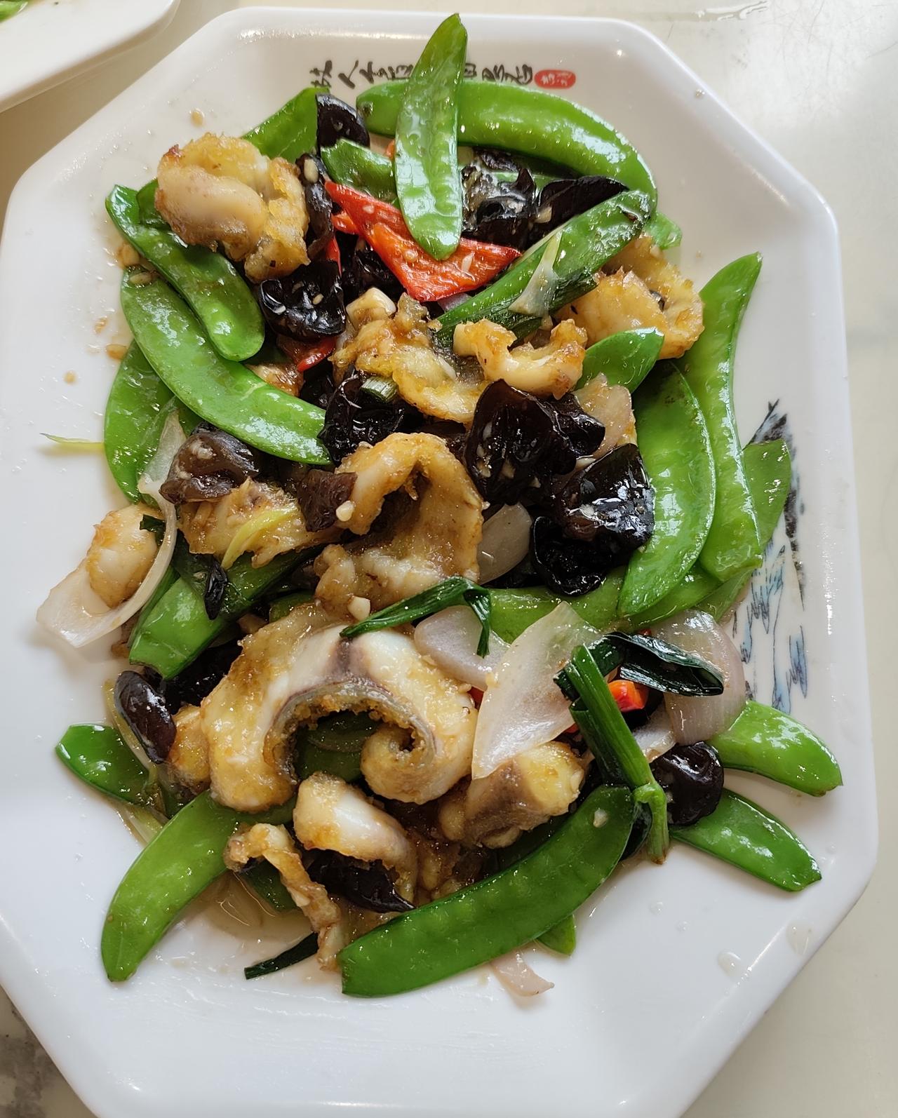 年初一我的小姑一家和小叔一家过来知识城食饭,我就找了一家顺德菜馆订一围台,年初一这几天推出新年套餐,价格1288元有烧鹅,白切鸡,多宝鱼,大虾,扣肉,猪手,茨菇,大元贝,咕噜肉,菜心,花旗参炖鸡汤,10个菜和一个汤。今天中午我去试食这间顺德菜馆煮的菜,点了一碟通心菜,一碟荷兰豆炒脆肉皖鱼片,一碟炒河粉,一碟炸渔腐,感觉还可以,我已经交500元订金了。