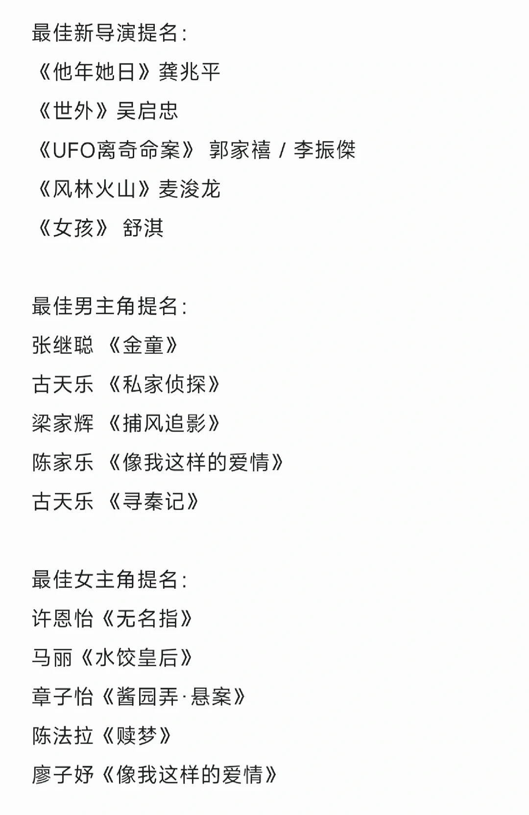 第44届香港金像奖提名