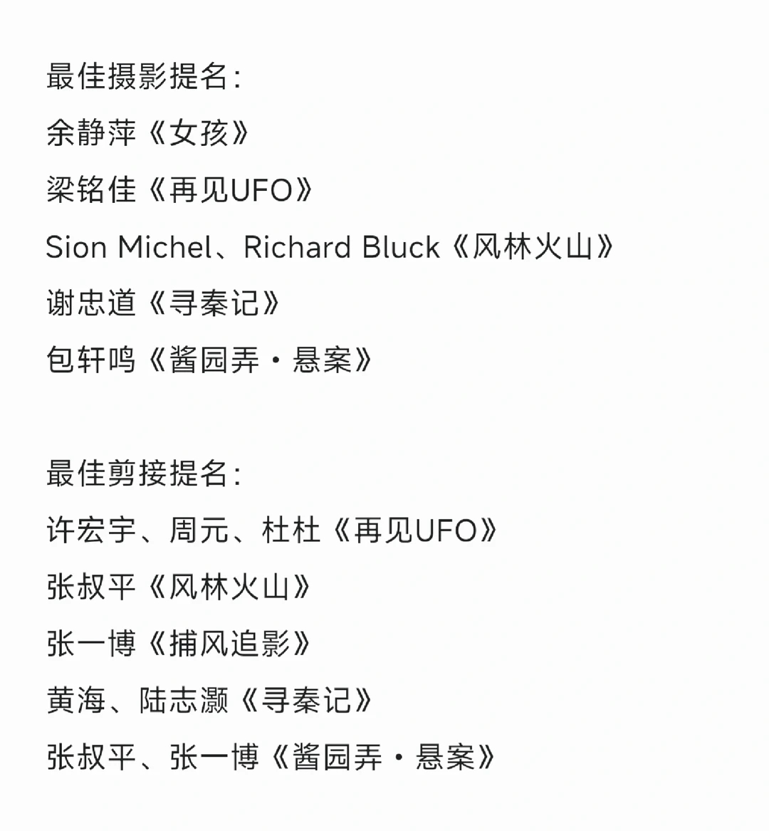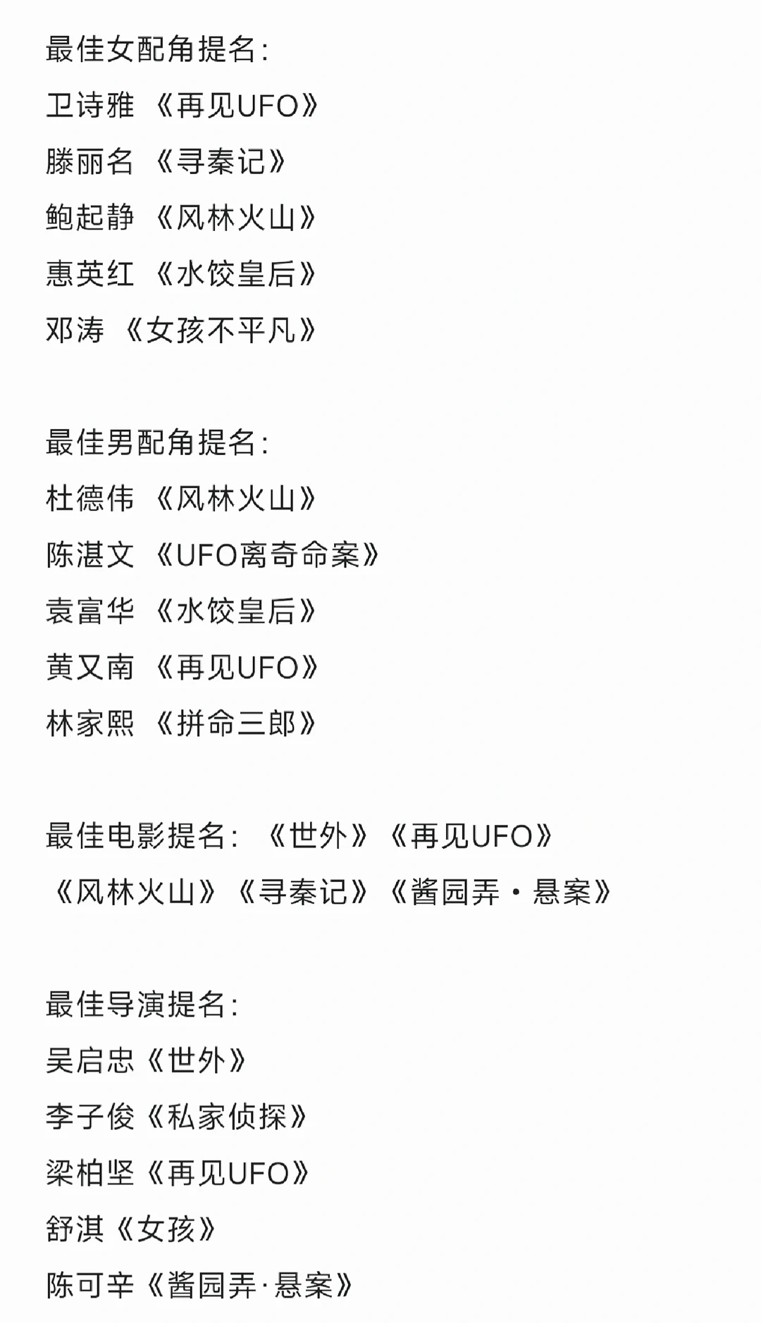 金像奖章子怡提名最佳女主角,我接受金像奖惠英红提名最佳女配角,我也接受但我真的实