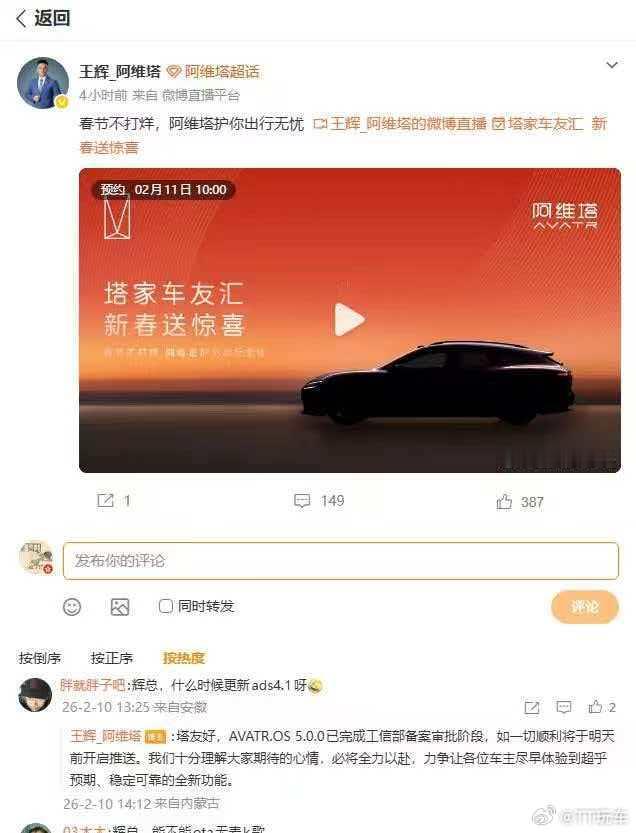 阿维塔ads4.1 这张图是有人ps的假图,真的没必要,我知道各位车友也等了很久,所以但凡有一点假消息都会去信,但真的没必要,信源就认准阿维塔官方,我这里有确认消息了也会说。就四天了,我觉得明天差不多了。