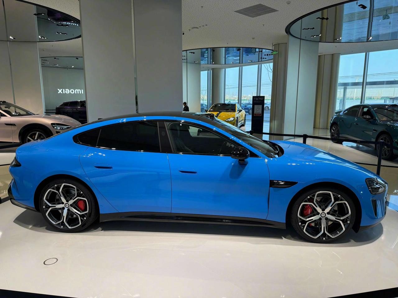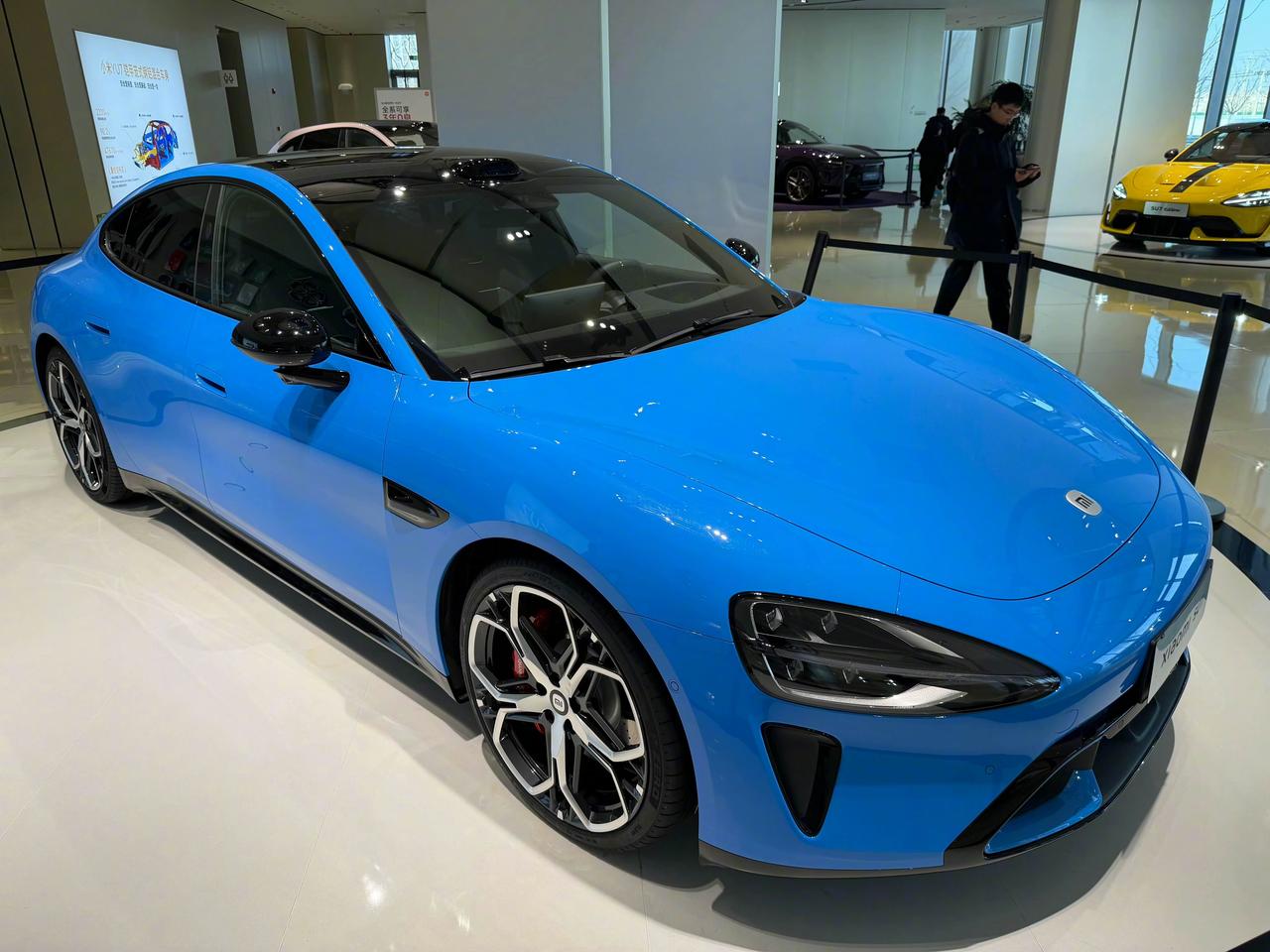 韩路:抢先实拍小米全新SU7! 新车的主打色蓝色真的是非常的好看,新车在外观层面改变不大,在内在方面改变挺大的,比如说最低配的车型也升级成了752V。 全新的轮毂样式挺好看的,比此前主推的那个梅花瓣的轮毂还要好看。在外观方面确实不需要大的更改,毕竟这套外观设计已经非常的成功了。