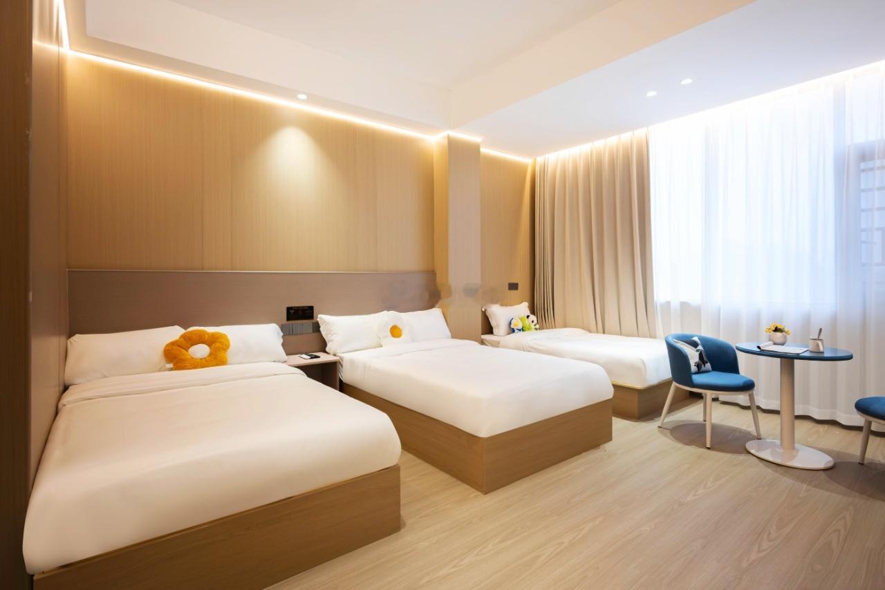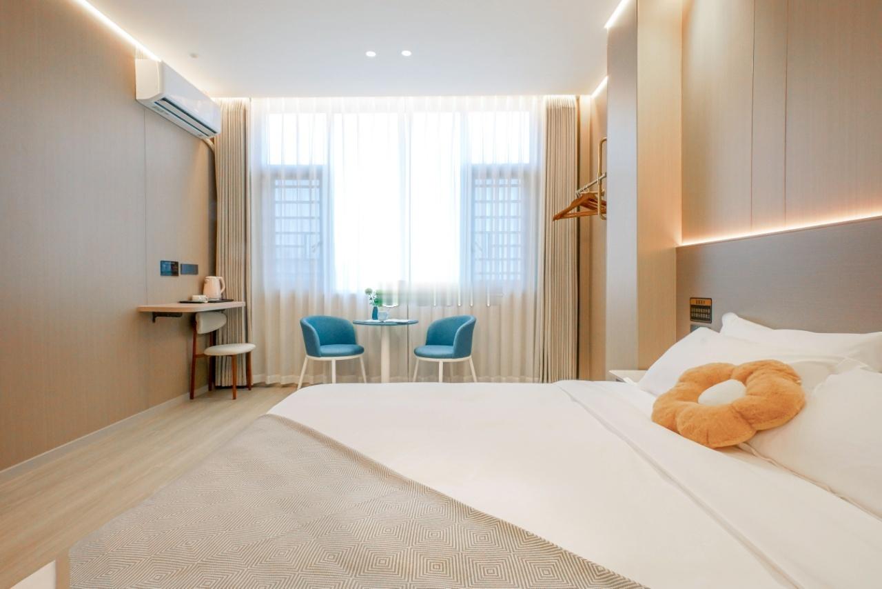 2️⃣ - 客房🏠全升级: -星级酒店等级式装修 - 55寸高清电视; - 零压床垫为您舒缓旅途疲惫; - 卫生标准严苛: - 布草一客一换,网上平台卫生评分4.7; - 楼道、电梯每日消毒
