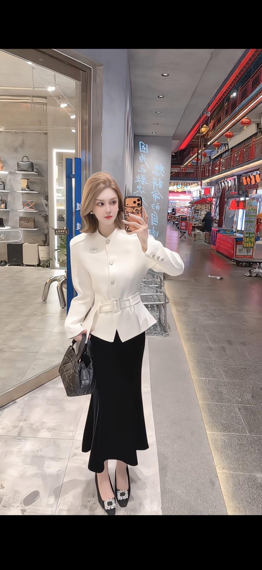 在穿搭上如何穿出高级感?想要穿出高级感,关键在于简约质感与精致细节的平衡。像这套穿搭,用米白收腰西装搭配黑色丝绒鱼尾裙,经典黑白配色自带高级滤镜。同色系腰带勾勒腰线,胸针与鞋扣的精致点缀,让整体造型利落又不失细节。无需繁复堆砌,选择垂坠感好的面料,注重版型剪裁,再用小配饰提升精致度,就能轻松营造出不费力的高级感。