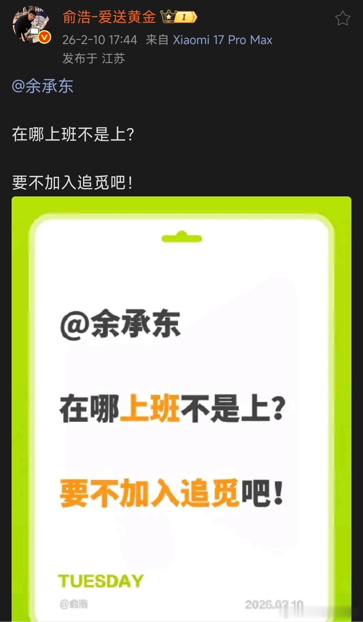 哈哈哈追觅CEO俞浩这个厉害了给余承东抛橄榄枝啦明天要不要给雷军来一个,哦还有李斌,李想,何小鹏,马斯克不能少