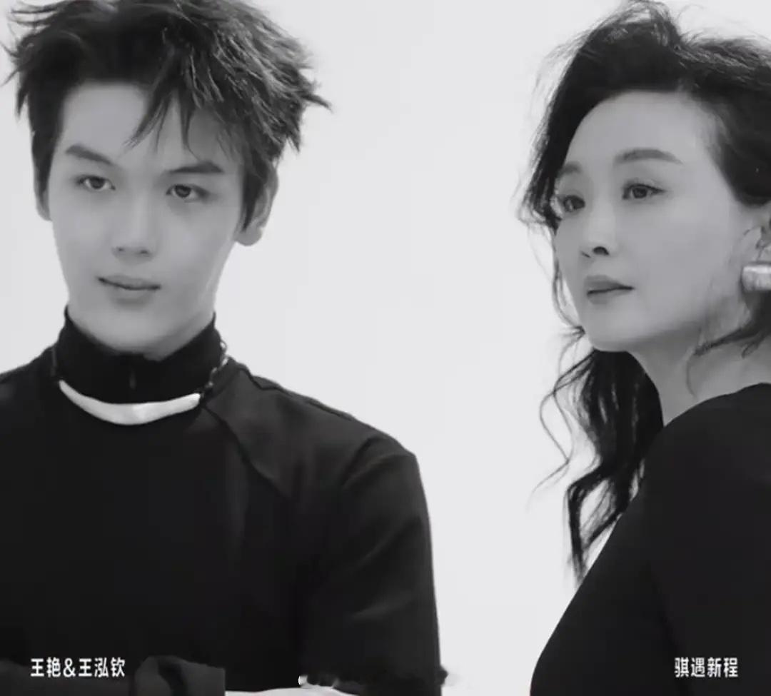 王艳母子拍大片,19岁球球频繁眨眼,脸上痘印明显,手倒是很纤细!