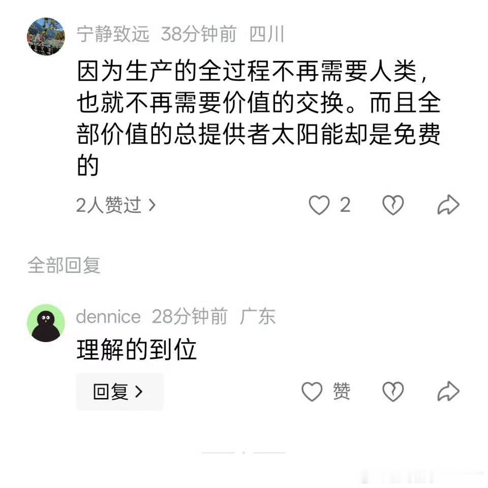 除非所有物资对于所有人类都严重过剩,包括所有人都可以不工作,不被需要,完全被替代。