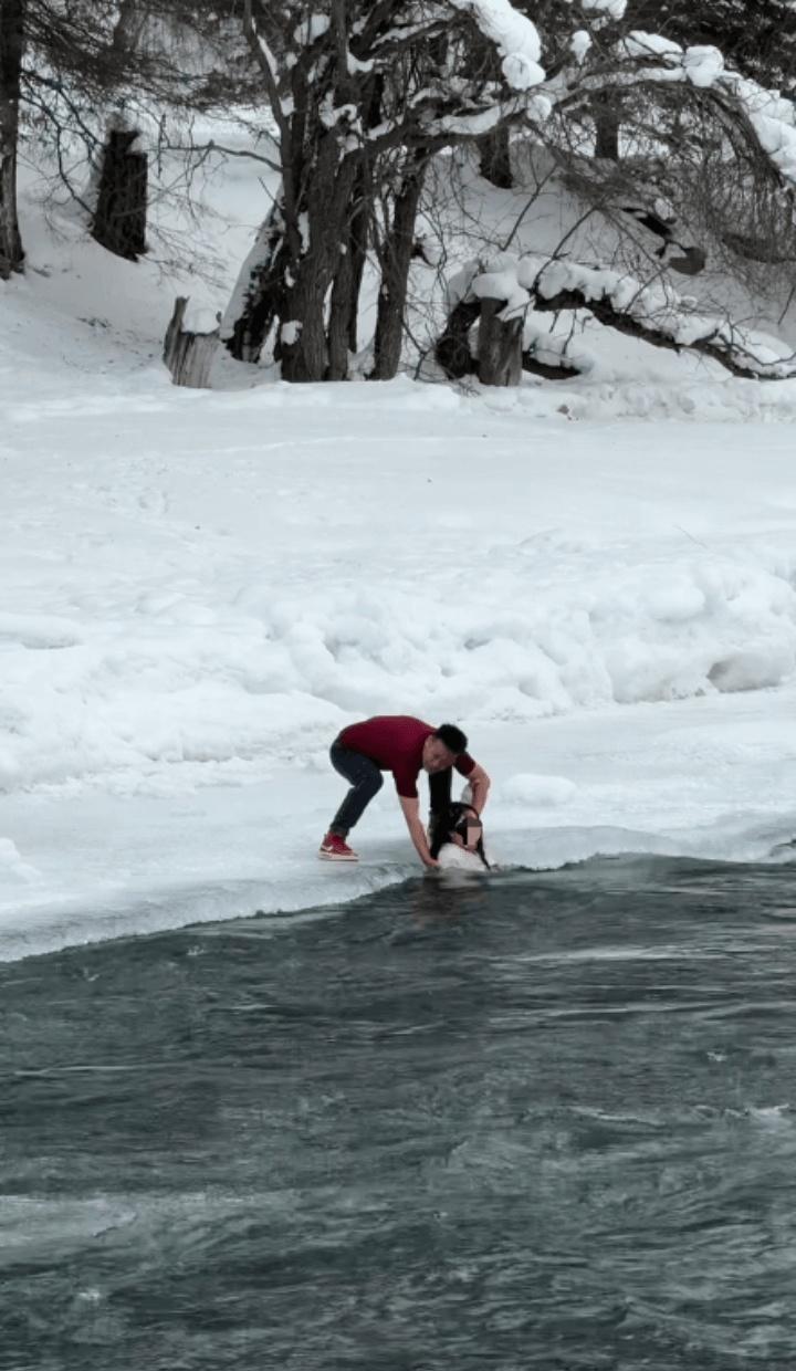 【喀纳斯一女孩坠冰河母亲为救女跳河,施救者:当时气温大概零下20多度】母女坠入冰河男子拖羽绒服跑去救人2月10日,有网友发视频称,她在新疆喀纳斯景区游玩时,发现一名小女孩不慎跌落到湍急的冰河之中,她的母亲救人心切也跳入了水中,两人一度被水流冲走,万幸被附近的其他游客组队救出,场面十分惊险。女孩坠冰河母亲救女跳河施救者发声 视频画面显示,一名身穿粉色上衣的小女孩在被湍急的河水裹挟而下,另一名身穿白色上衣的女子跑入河中企图救援,但疑似因水流太急不敢乱动,只能在岸边保持身体稳定不被冲走,河道两岸还有多名游客在雪地上跟随尝试救人,此时一名身穿红色短袖的男子在其他人的帮助下将小女孩从水中拉起,随后赶忙跨过河道又将女子救起。 2月10日,极目新闻记者私信视频发布者,但未获回复。记者在社交平台上注意到,还有多位其他在场游客也发布了视频,其中一名游客告诉记者,参与救援的红衣男子是当地一家旅游客运公司的领队,名叫邓子龙,并提供了他的电话。 邓子龙告诉极目新闻记者,他是新疆伊犁人,今年38岁,是当地的一名领队向导,当天他带队到喀纳斯景区游玩,13时30分左右,他在河边突然听到有其他游客呼喊救命,这才发现有一对母女掉入了冰冷的河水中,“当时气温大概零下20多度,河水不仅很冷,还特别急,我来不及多想就跑过去救人”。他首先冲到岸边将小女孩捞起,随后又跨过河道,将小女孩的母亲拉了起来,“小女孩大概10多岁,两人是一对自驾游的母女,可能是拍照时不小心掉下去了”。随后赶来的120急救车将两人送往了医院。 邓子龙说,景区的河道边有警戒线和警示牌,但很多游客为了拍照还是选择靠近河水,但由于河边都是冰面,因此很容易打滑跌落。至于救人时为何身穿短袖,他表示,其实并非他不怕冷,而是当时他心里只想着快点救人,穿太厚不方便,因此才脱了羽绒服。 另据扬子晚报报道,当地警方称此次落水的两名人员为自驾游客,系一对母女。警方表示,事发区域设有禁止靠近河边的安全提示,二人因未留意提示不慎落水。事发后现场群众第一时间展开救援,成功将二人救上岸。警方接警后也及时出警处置,经核实,两名落水者身体均无大碍,仅衣物被水打湿、车钥匙丢失。(极目新闻记者 王柳钦)