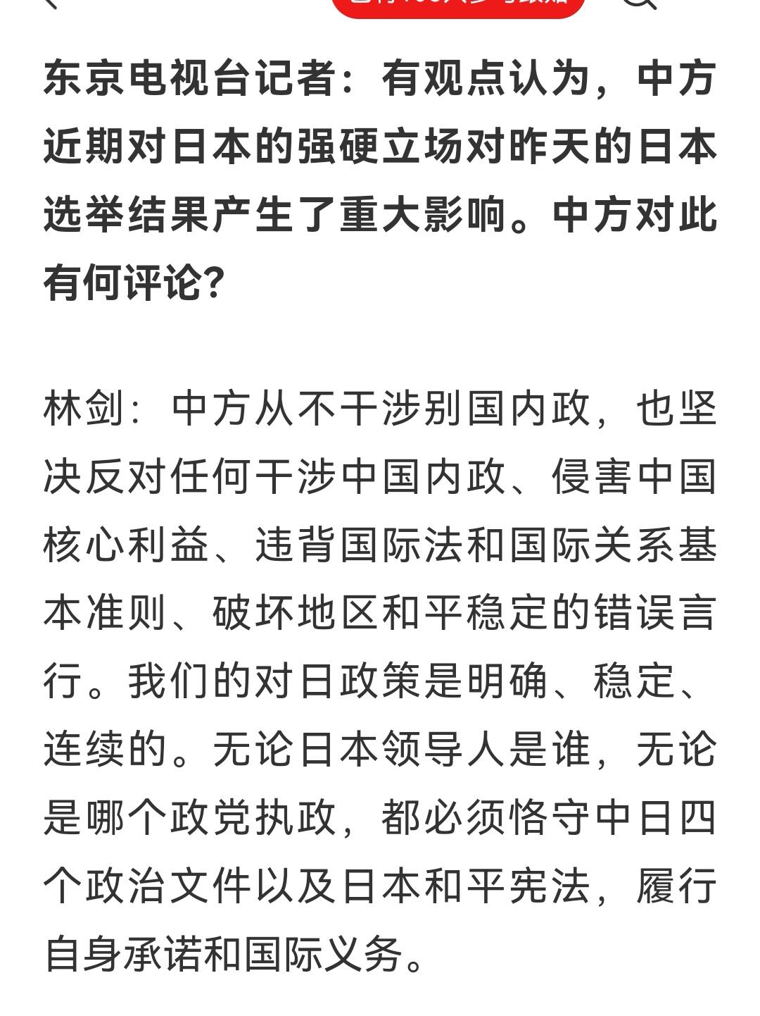 日本国会选举后,外交部发言人首次回应相关敏感问题,这是标准答案!其他人说的都不算。