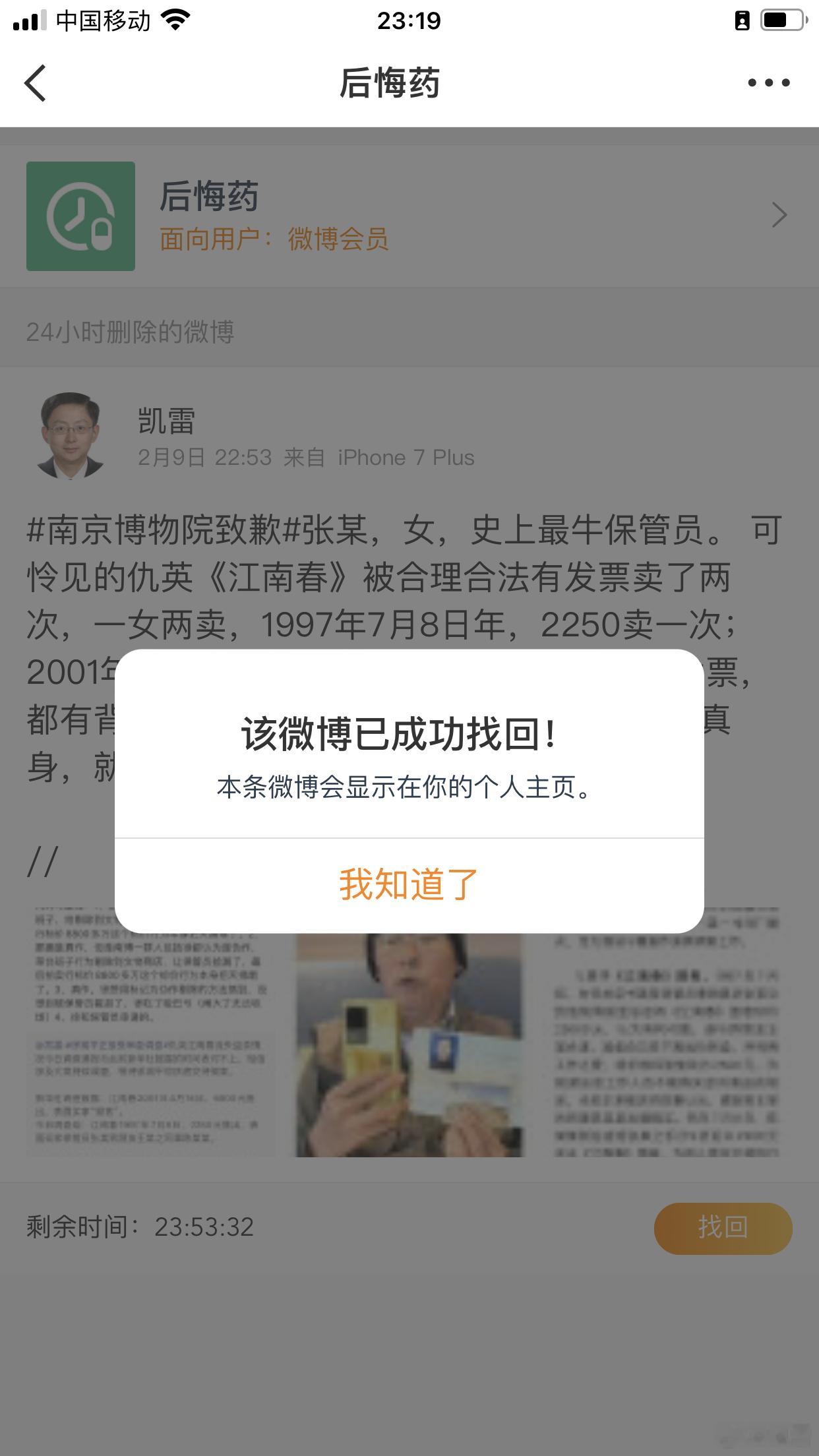 谢谢微博会员,恢复删除微博有两个链接,管用,置顶了。微博后悔药网页链接 粉丝取关