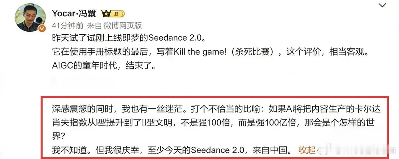 游戏科学CEO冯骥感叹道:如果AI把内容生产的卡尔达舍夫指数,从I型提升到了Ⅱ型文明,不是强100倍,而是强100亿倍,那会是个怎样的世界?